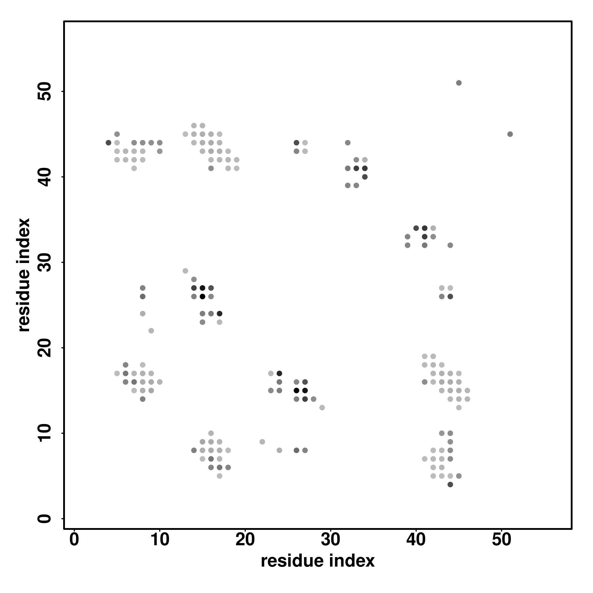 For the contact map, each dot represents a residue pair with predicted contact,