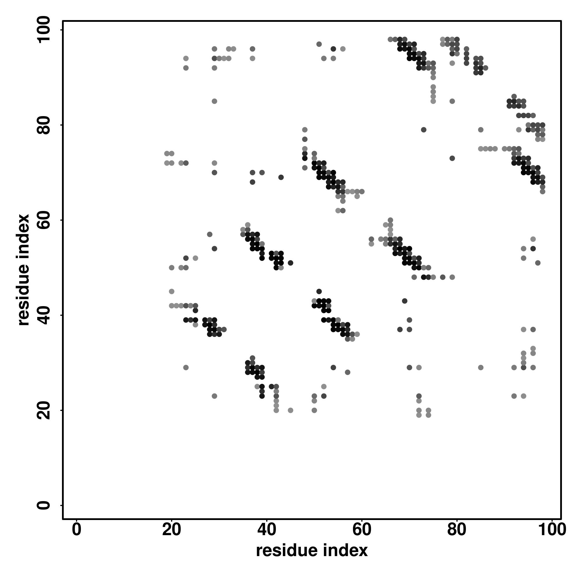 For the contact map, each dot represents a residue pair with predicted contact,