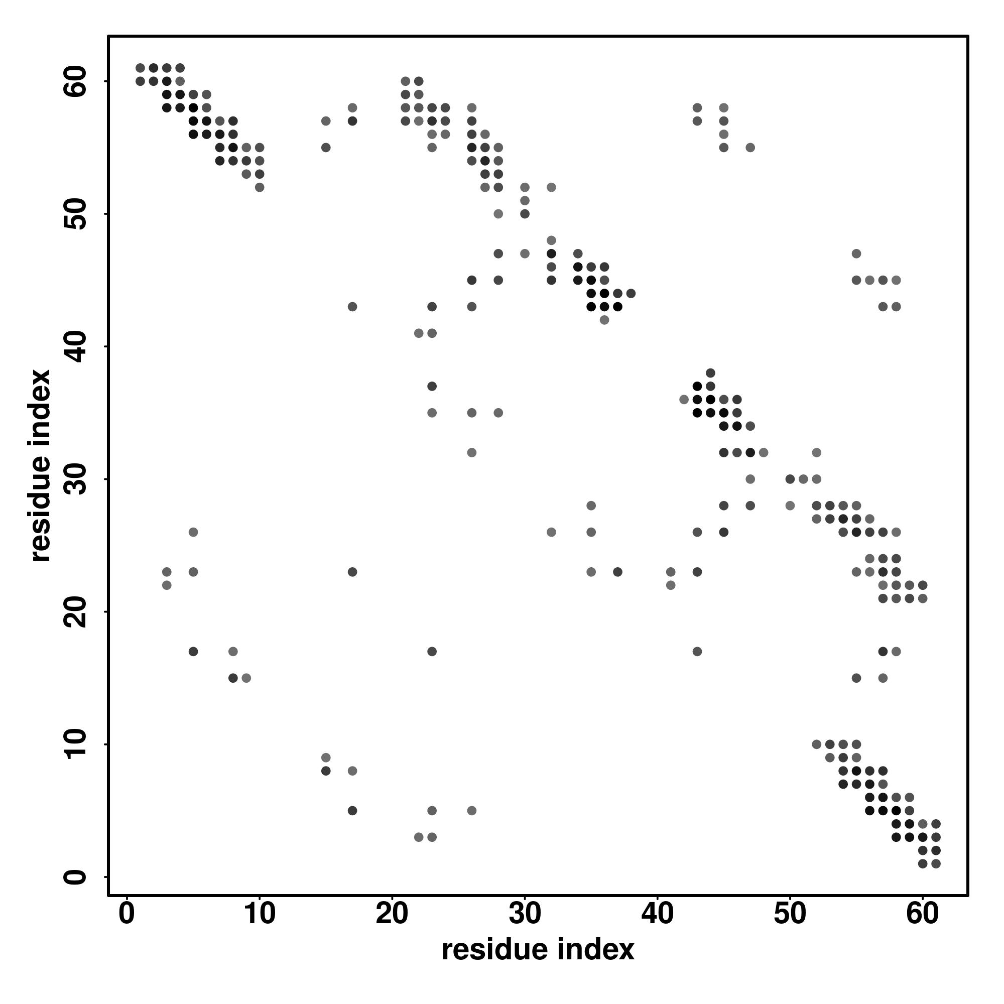 For the contact map, each dot represents a residue pair with predicted contact,