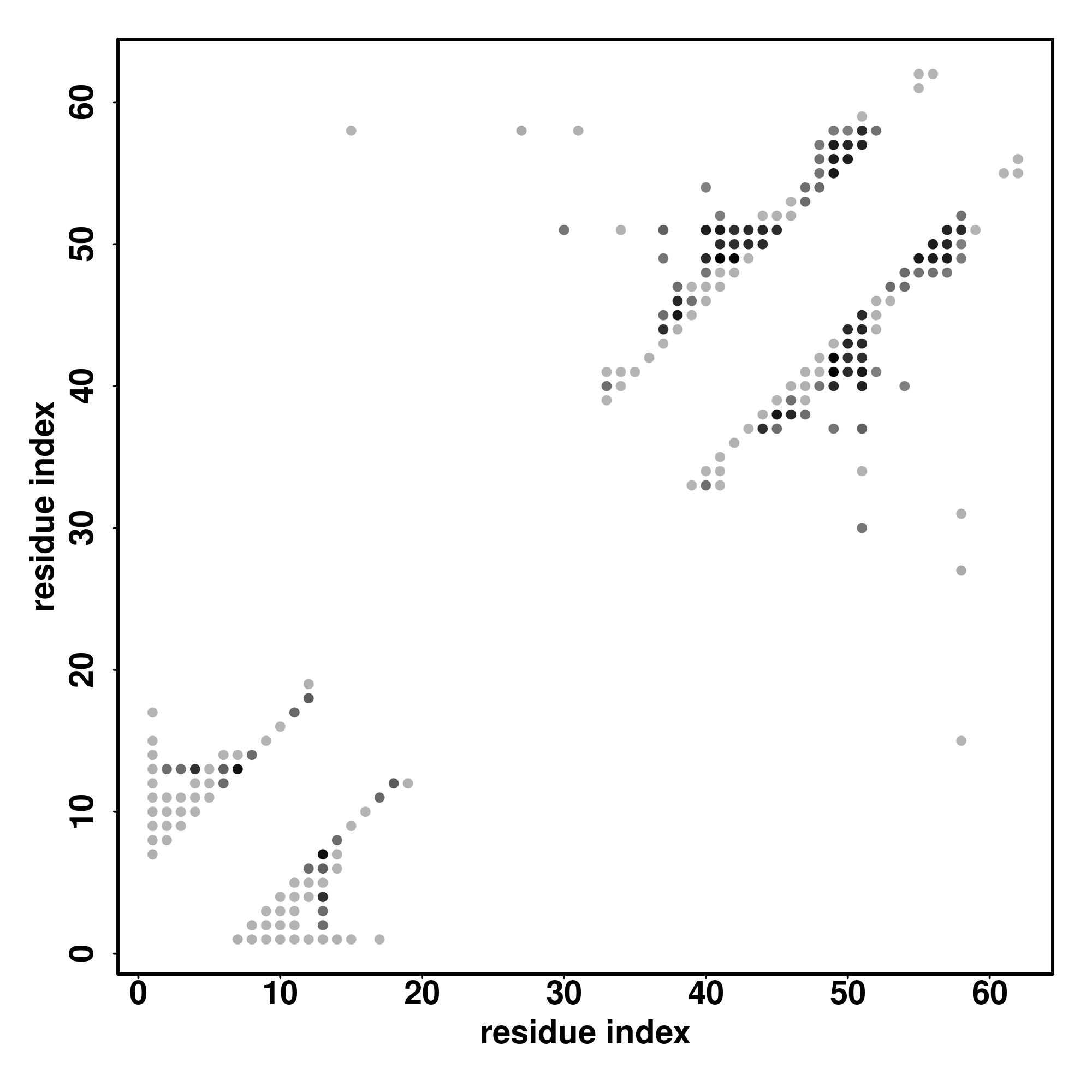 For the contact map, each dot represents a residue pair with predicted contact,