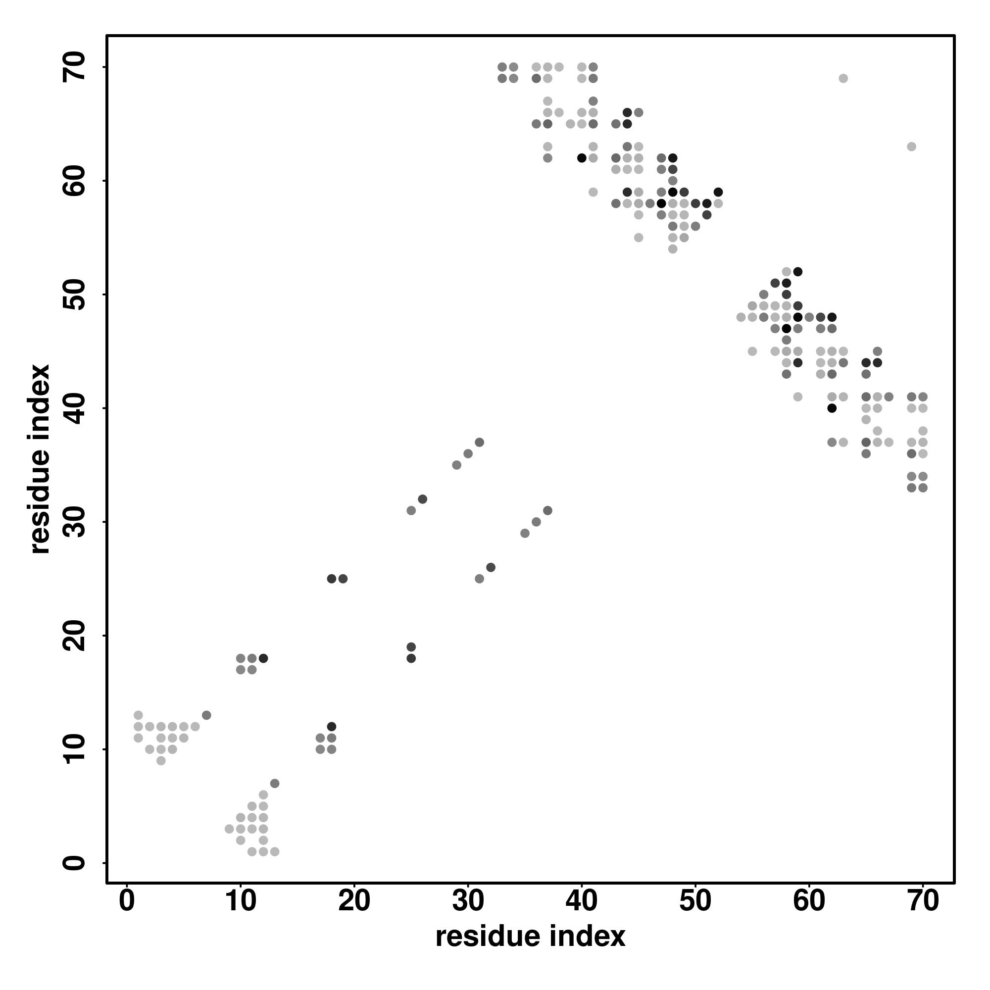 For the contact map, each dot represents a residue pair with predicted contact,