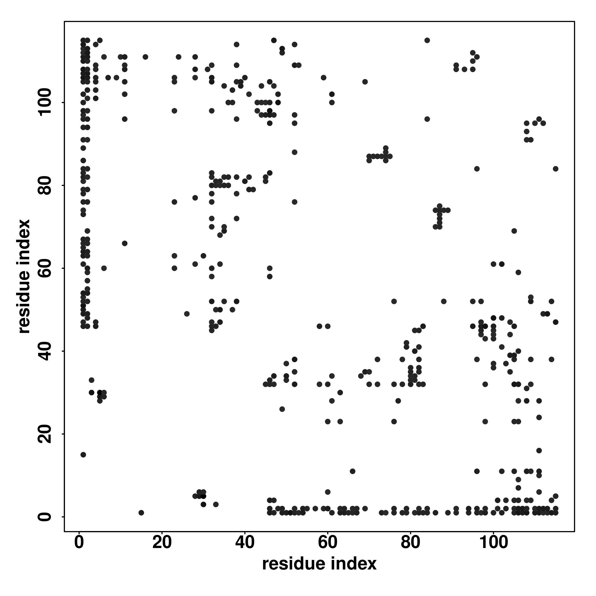 For the contact map, each dot represents a residue pair with predicted contact,