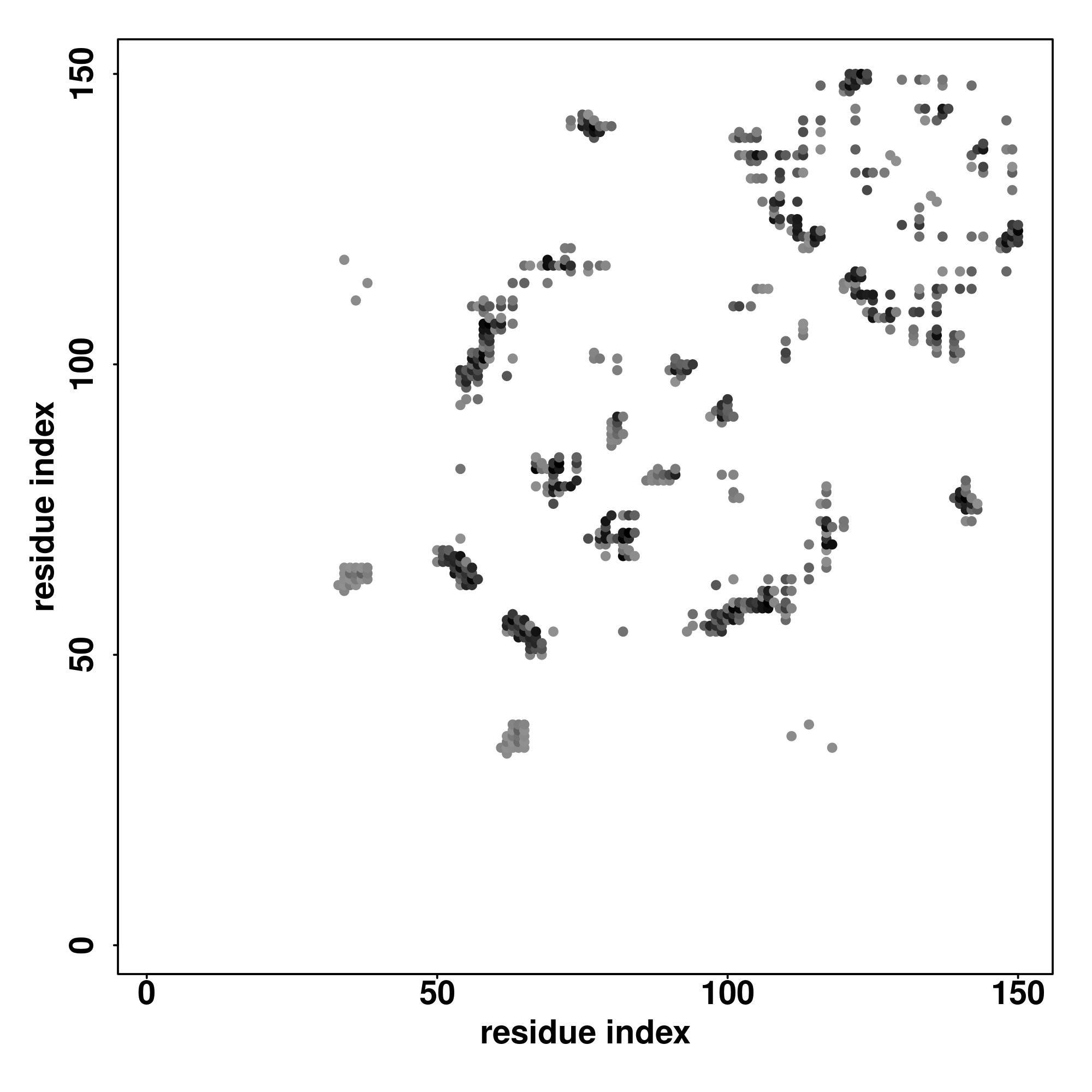 For the contact map, each dot represents a residue pair with predicted contact,