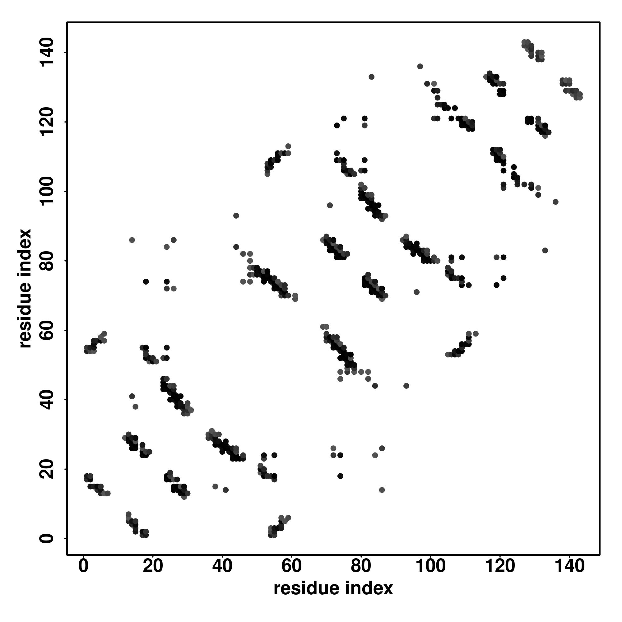 For the contact map, each dot represents a residue pair with predicted contact,