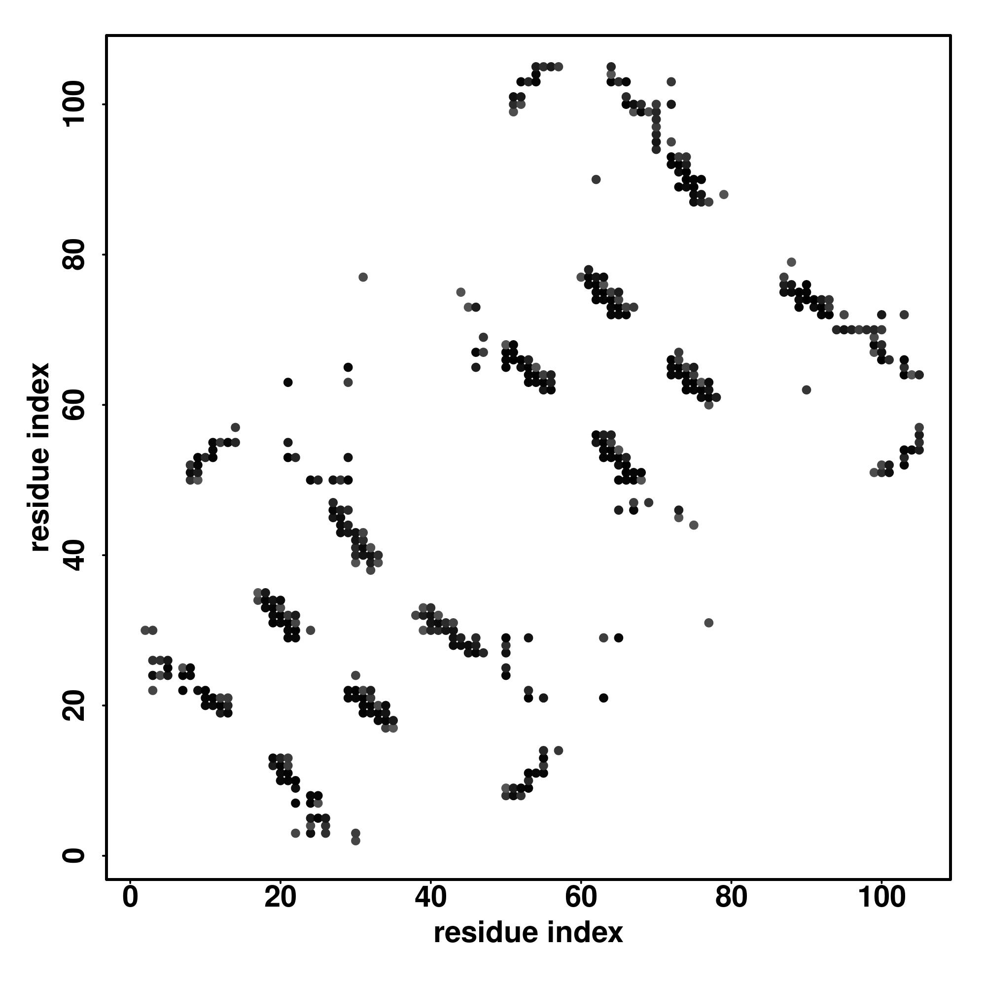 For the contact map, each dot represents a residue pair with predicted contact,