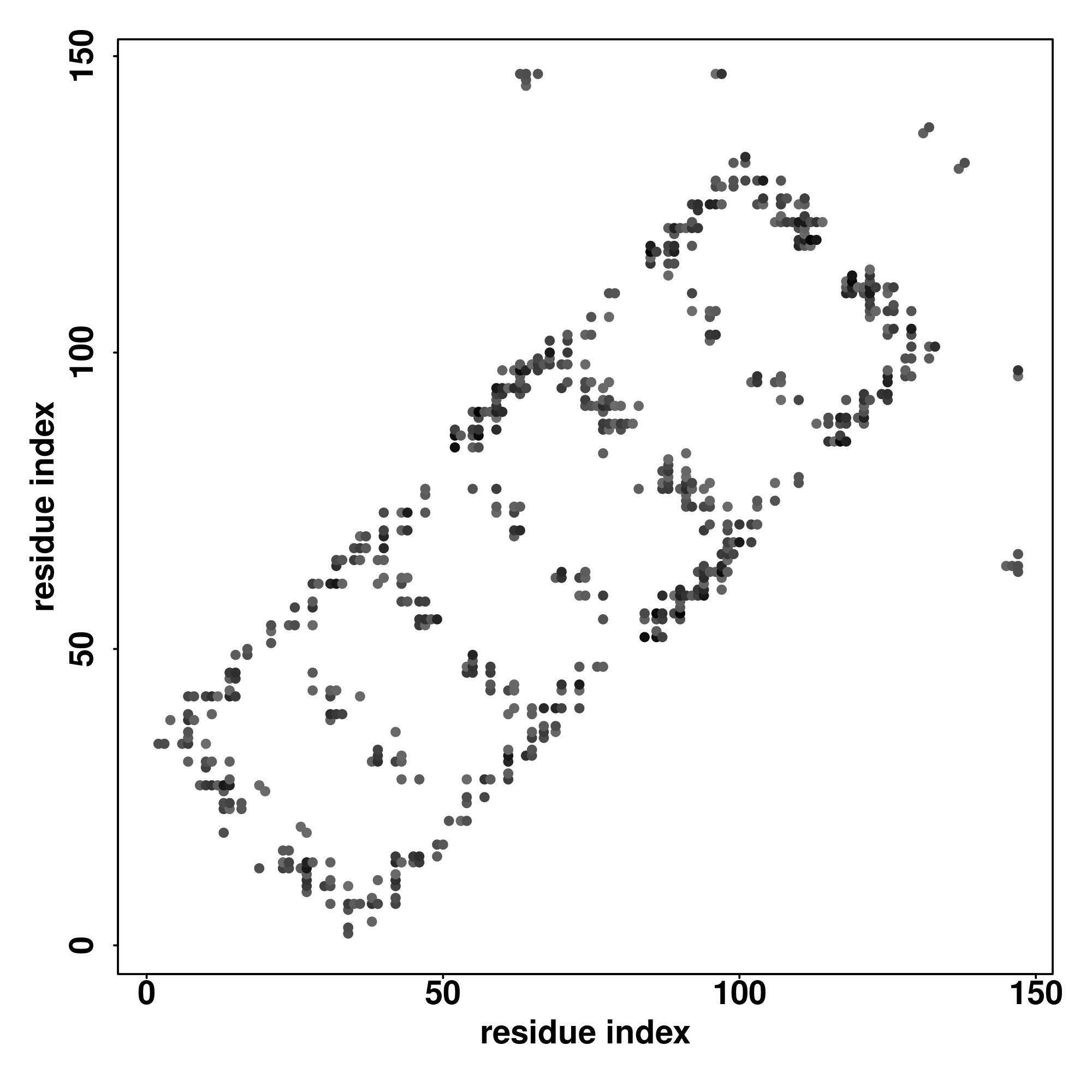 For the contact map, each dot represents a residue pair with predicted contact,