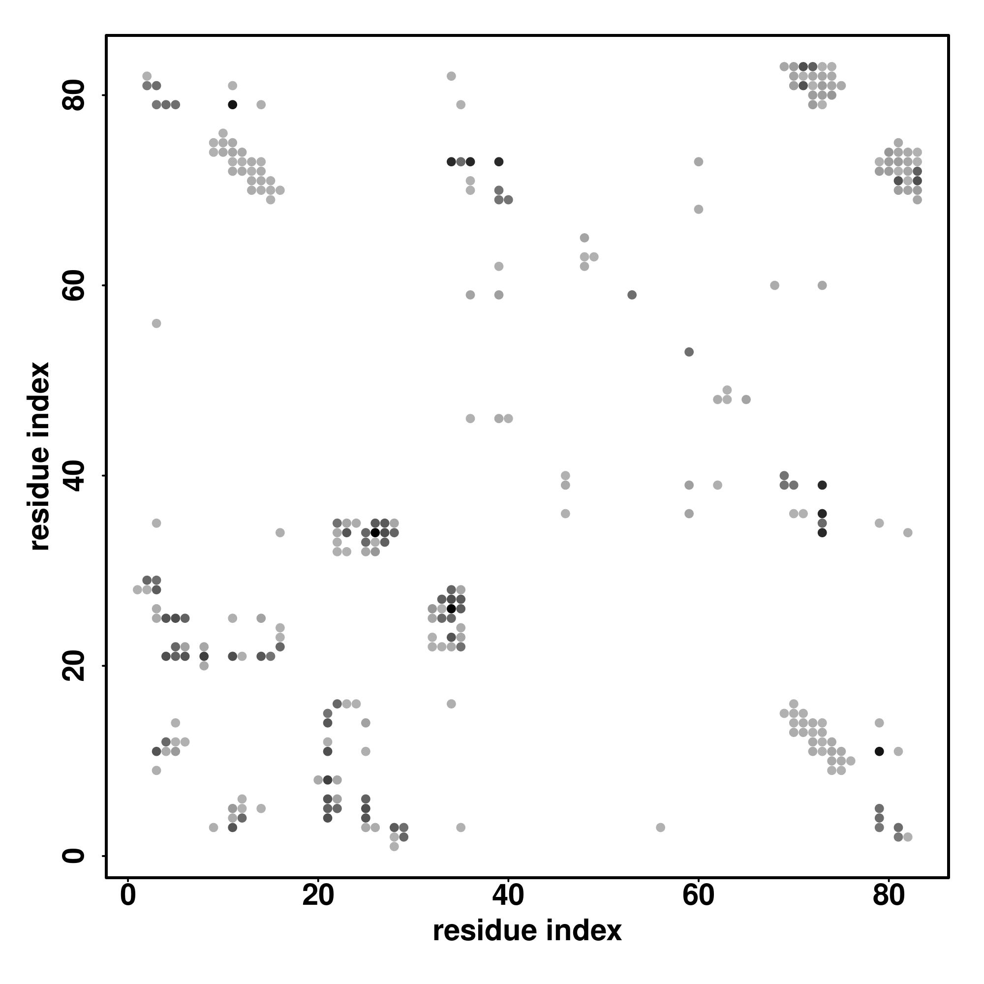 For the contact map, each dot represents a residue pair with predicted contact,