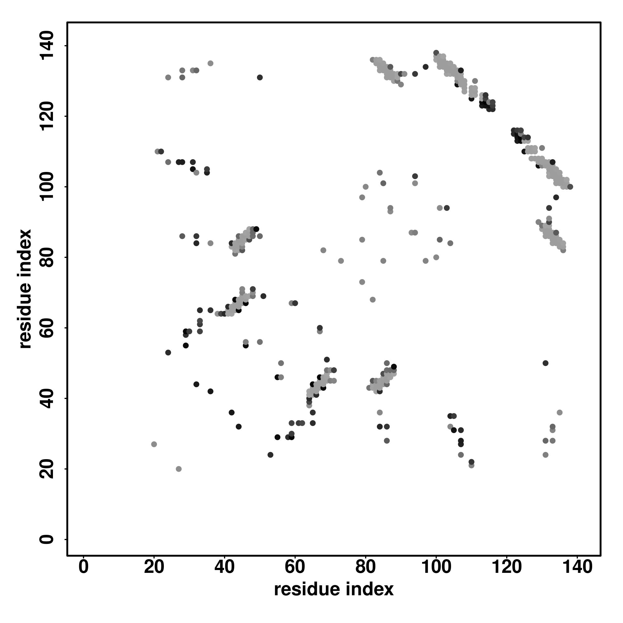 For the contact map, each dot represents a residue pair with predicted contact,