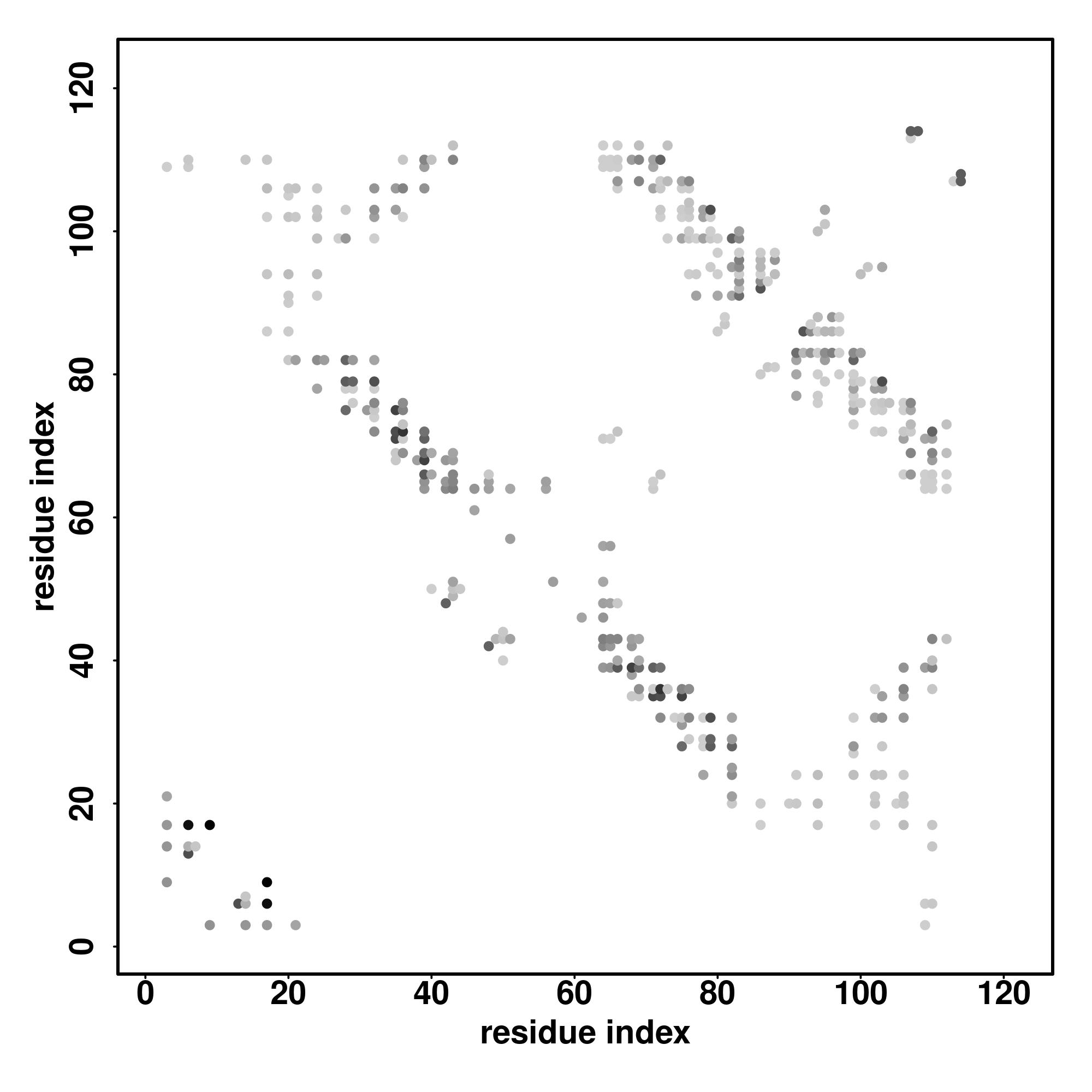 For the contact map, each dot represents a residue pair with predicted contact,