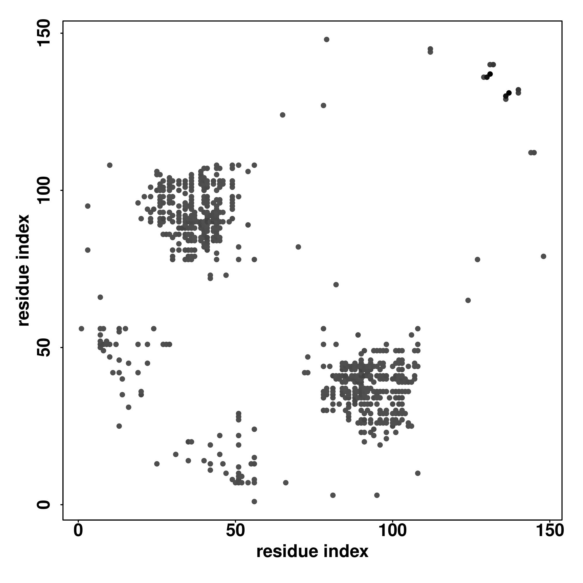 For the contact map, each dot represents a residue pair with predicted contact,