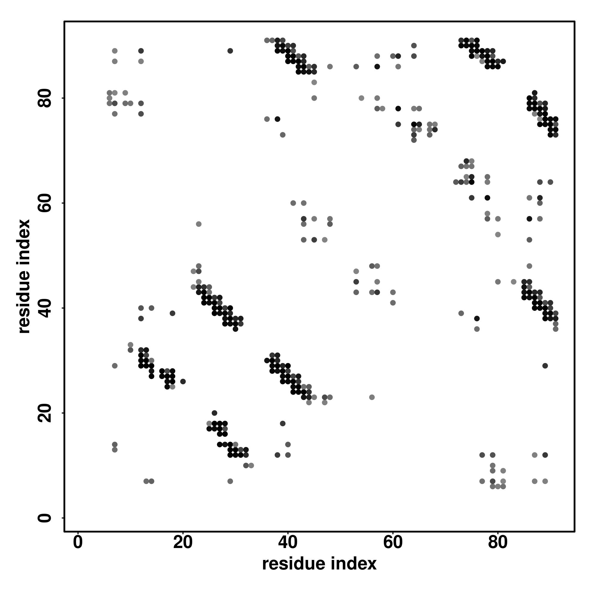 For the contact map, each dot represents a residue pair with predicted contact,