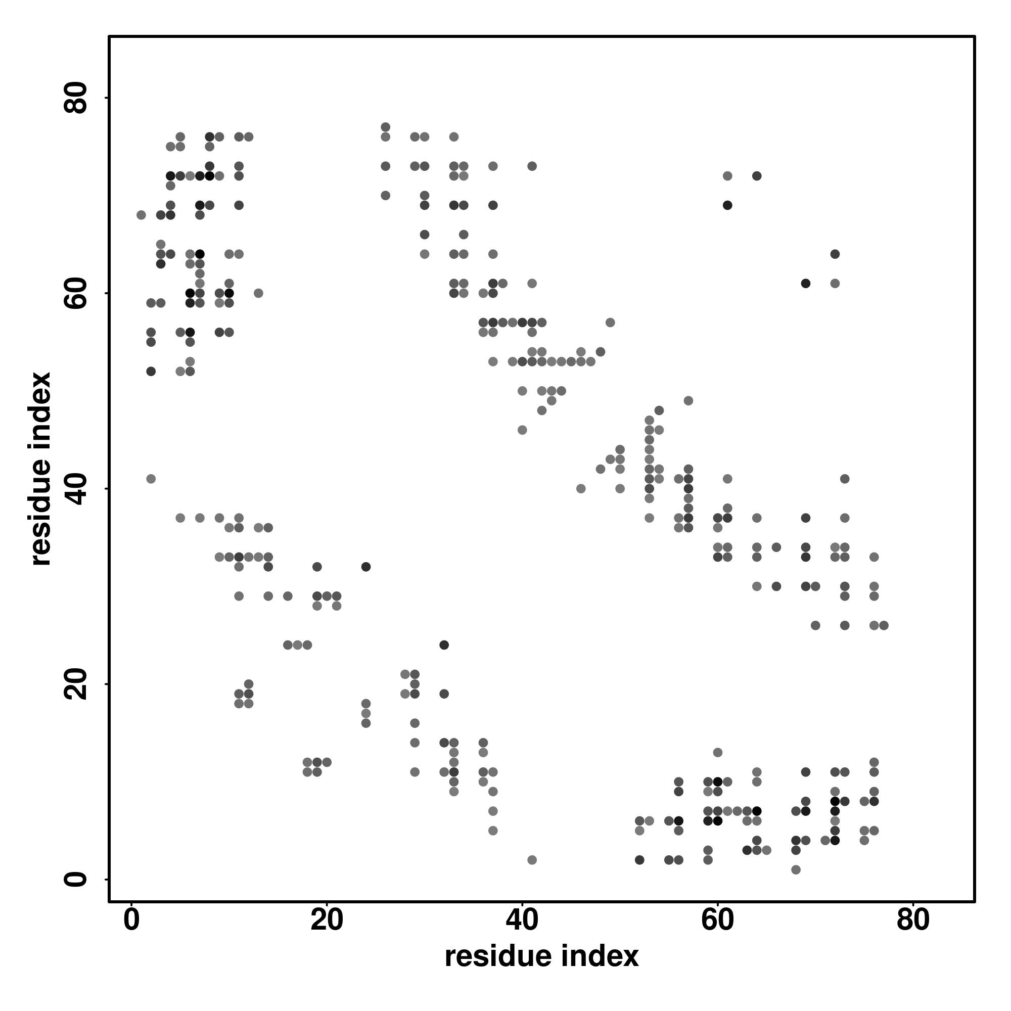 For the contact map, each dot represents a residue pair with predicted contact,