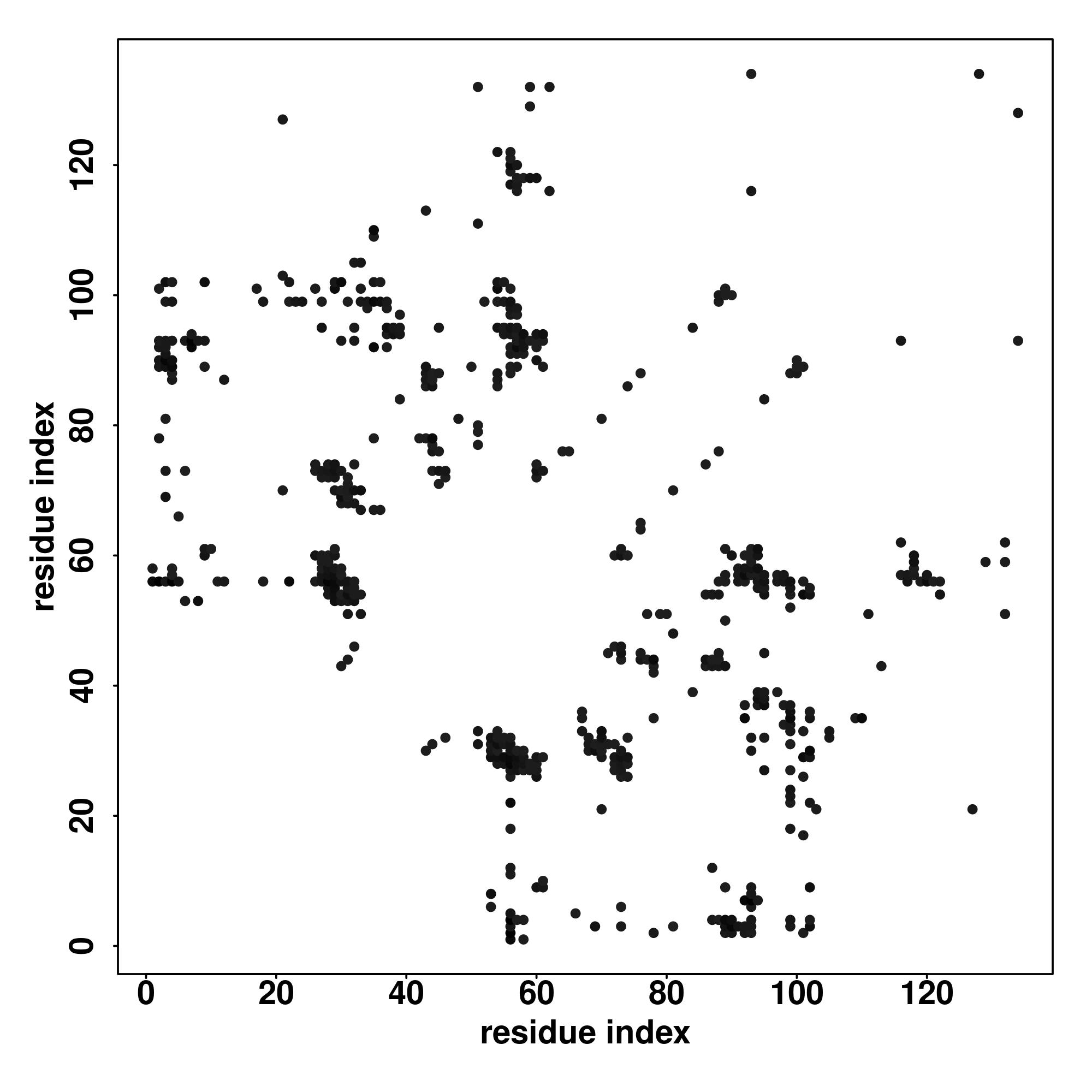 For the contact map, each dot represents a residue pair with predicted contact,