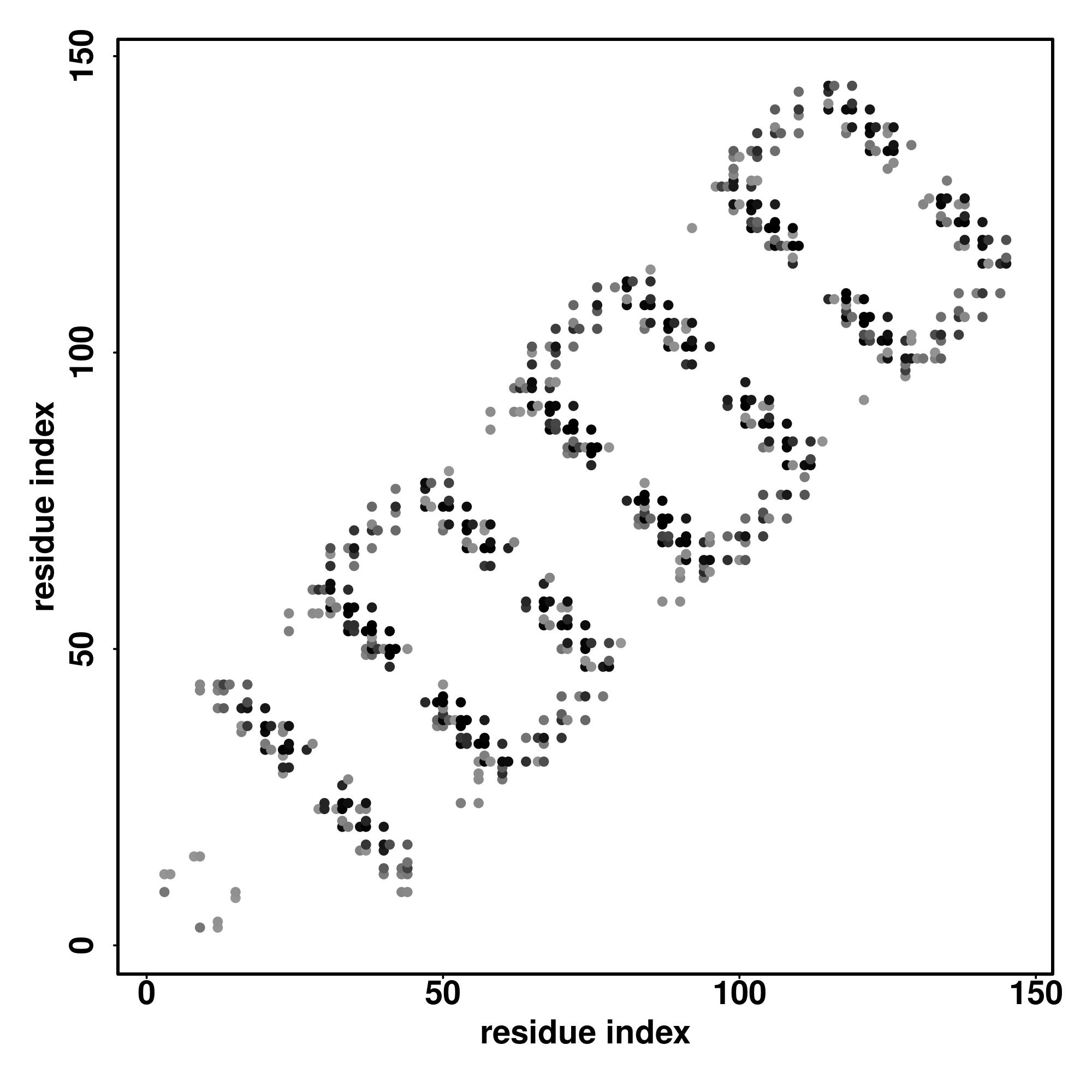 For the contact map, each dot represents a residue pair with predicted contact,