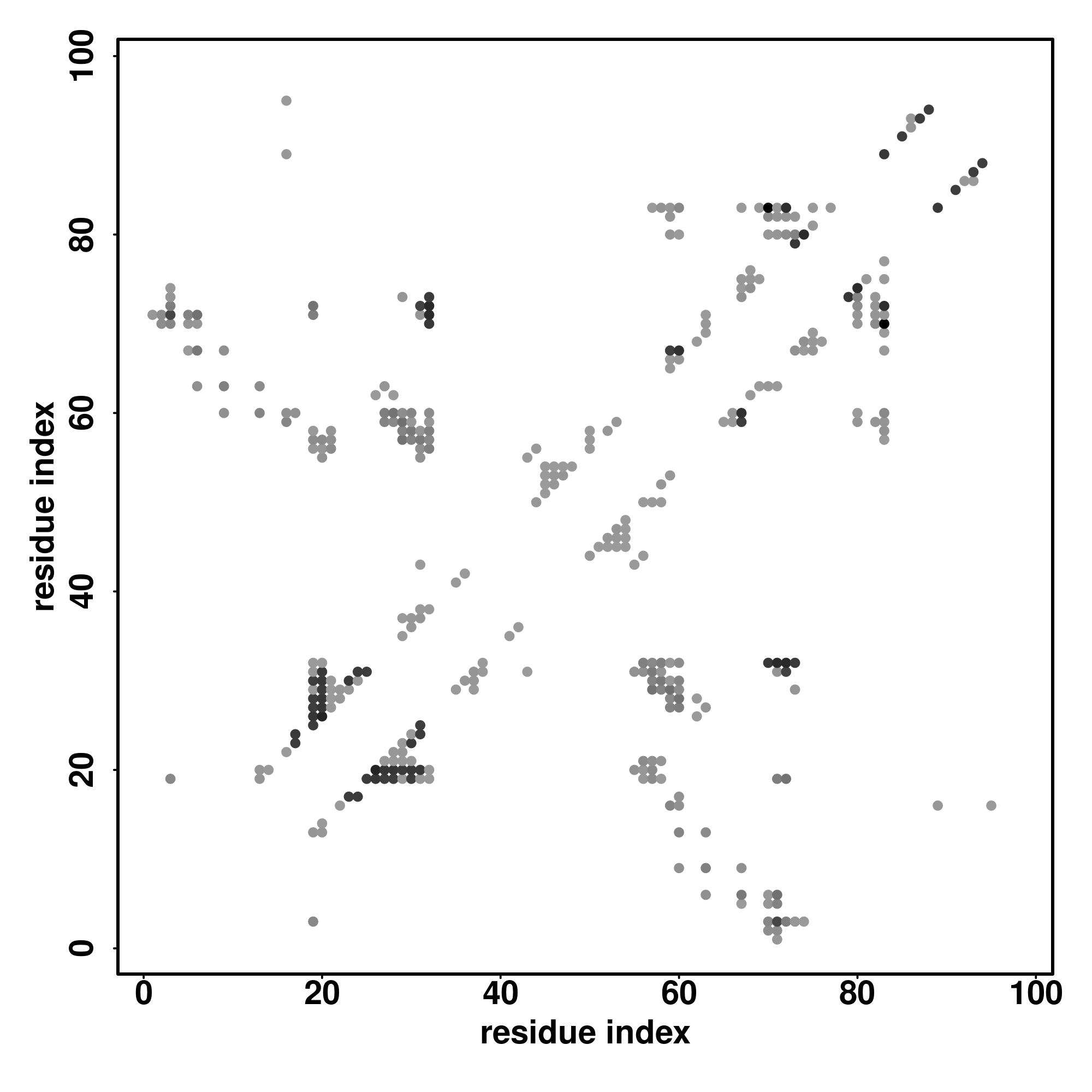 For the contact map, each dot represents a residue pair with predicted contact,
