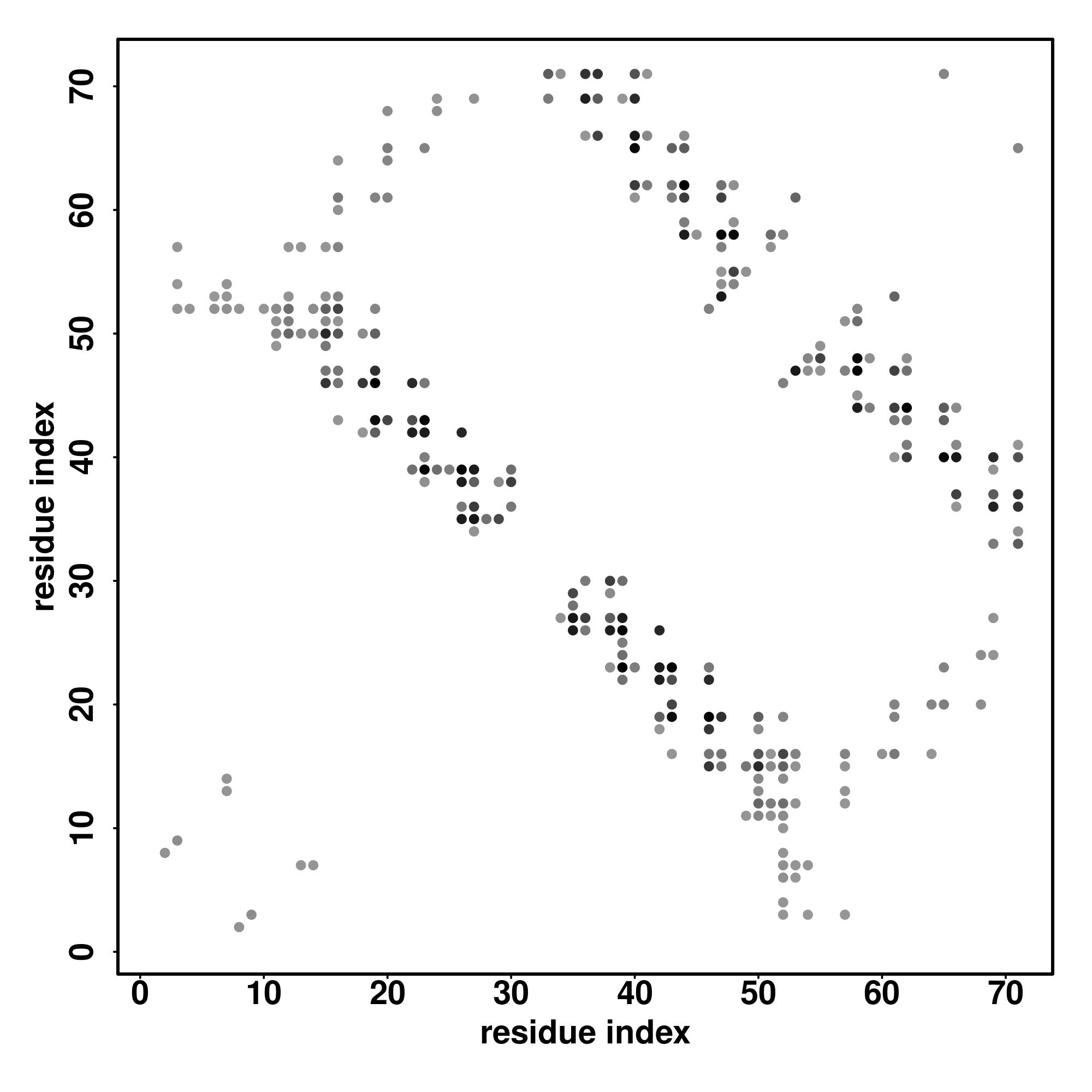 For the contact map, each dot represents a residue pair with predicted contact,
