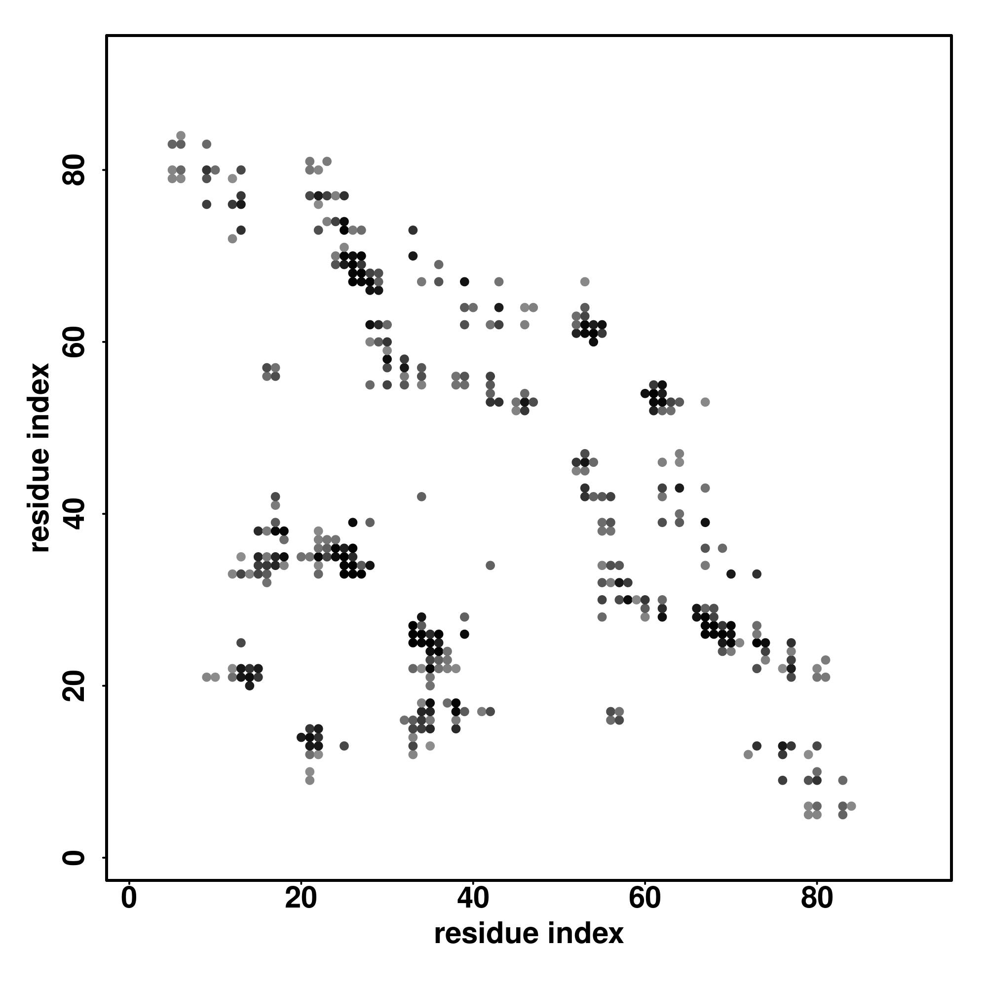 For the contact map, each dot represents a residue pair with predicted contact,