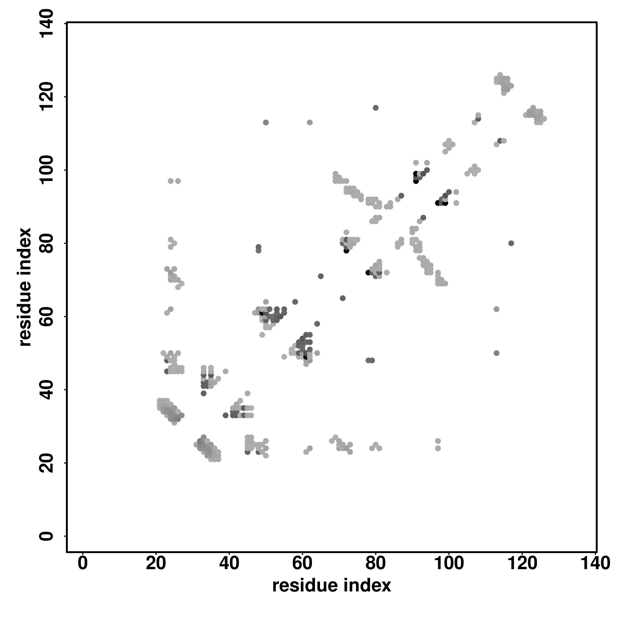 For the contact map, each dot represents a residue pair with predicted contact,