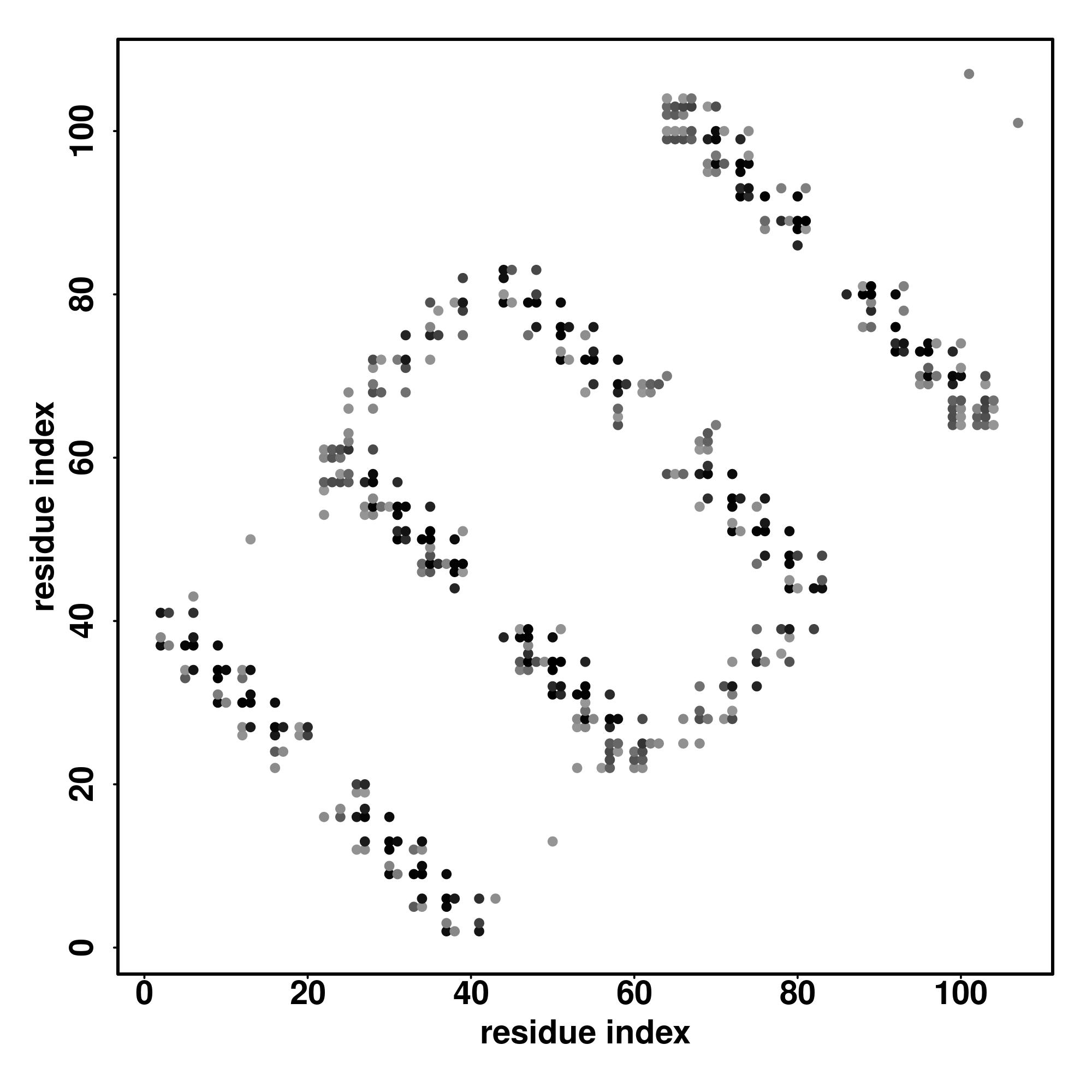 For the contact map, each dot represents a residue pair with predicted contact,