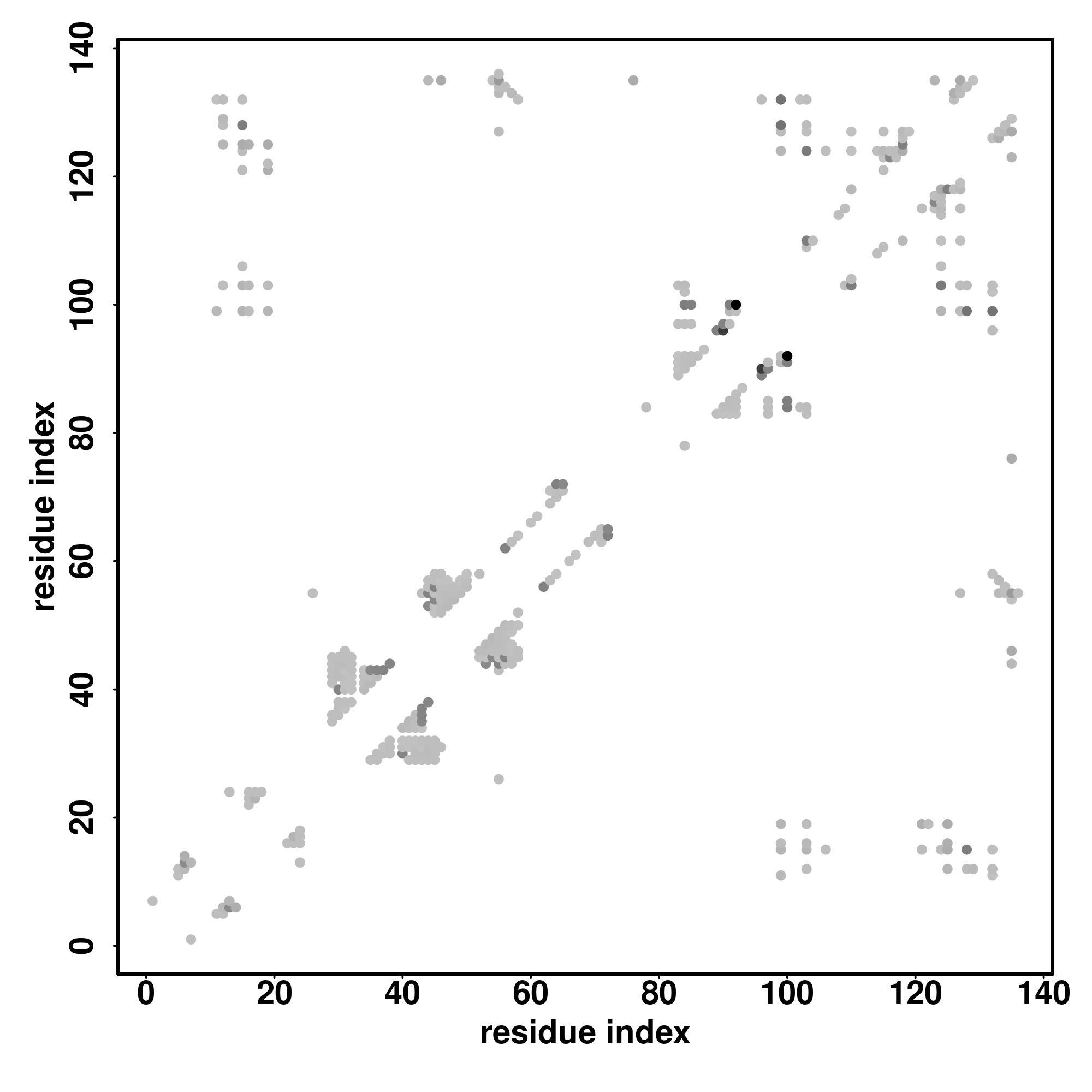 For the contact map, each dot represents a residue pair with predicted contact,