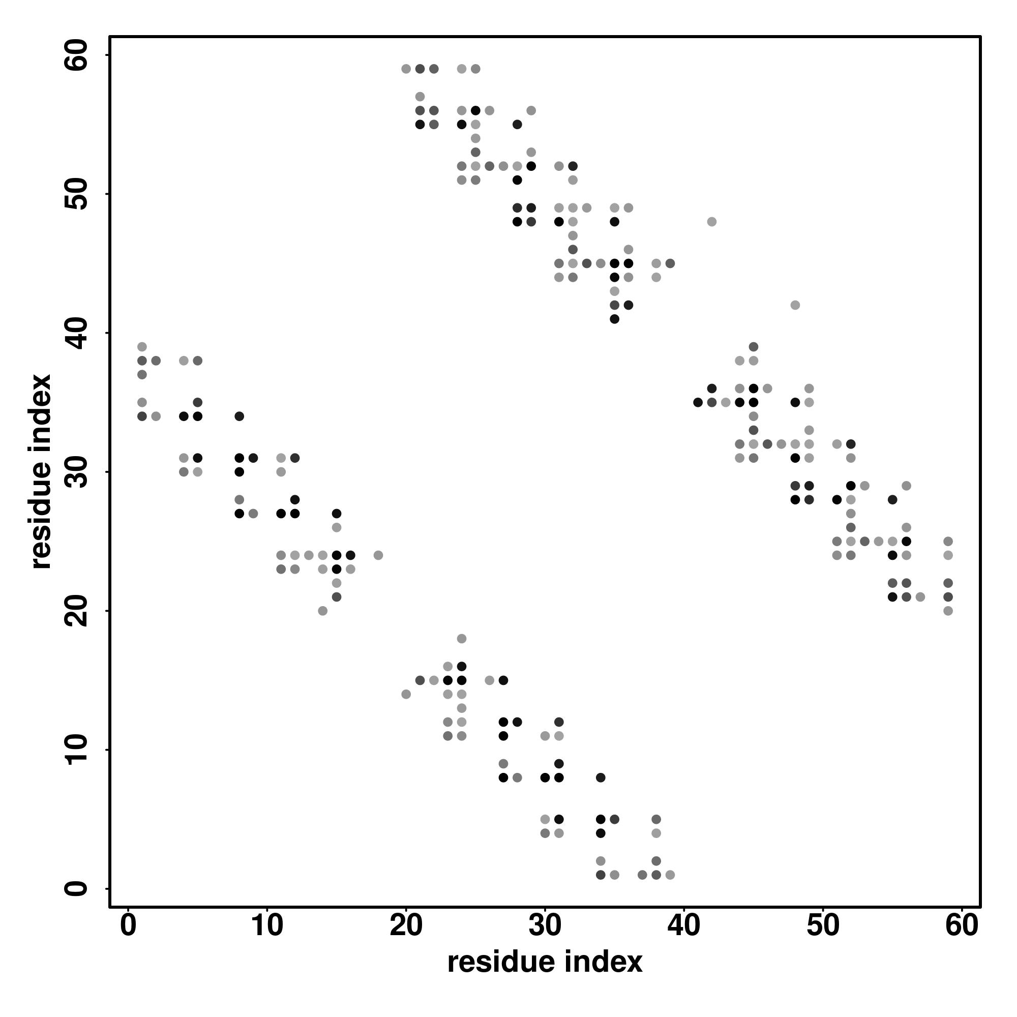 For the contact map, each dot represents a residue pair with predicted contact,