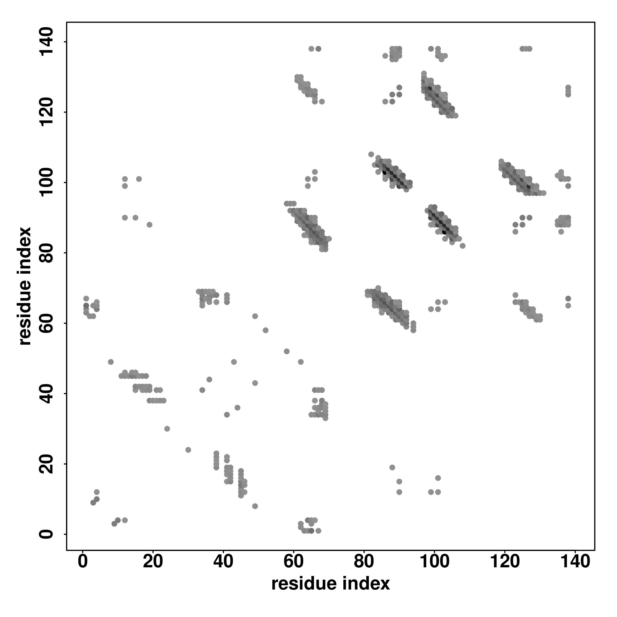 For the contact map, each dot represents a residue pair with predicted contact,