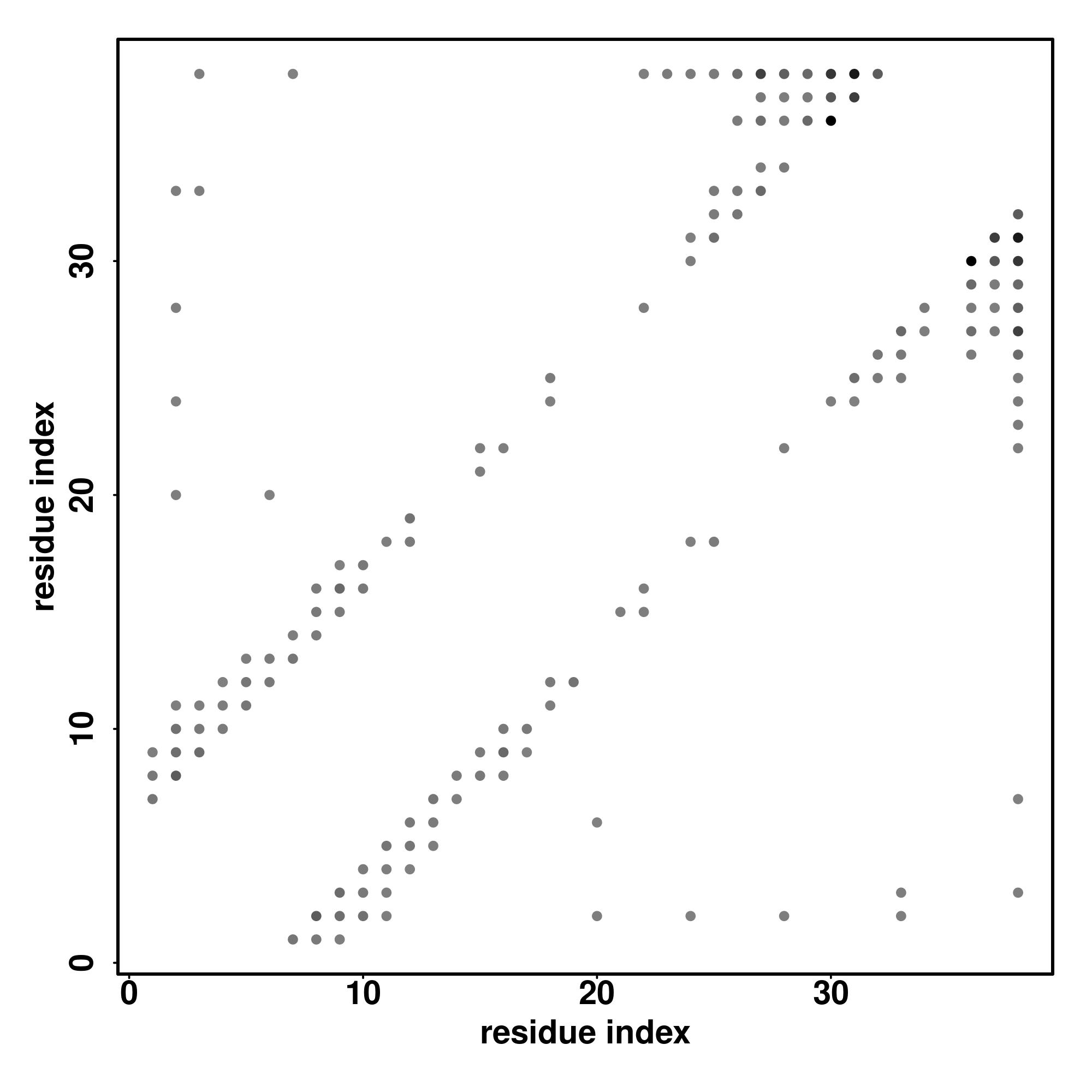 For the contact map, each dot represents a residue pair with predicted contact,
