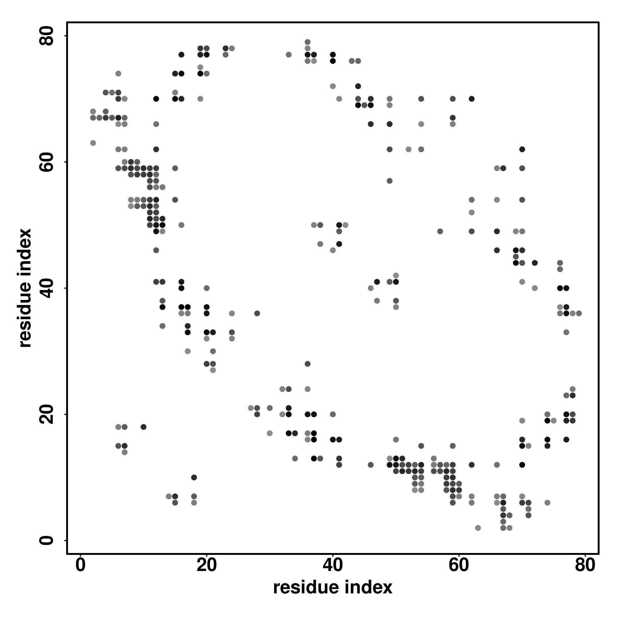 For the contact map, each dot represents a residue pair with predicted contact,