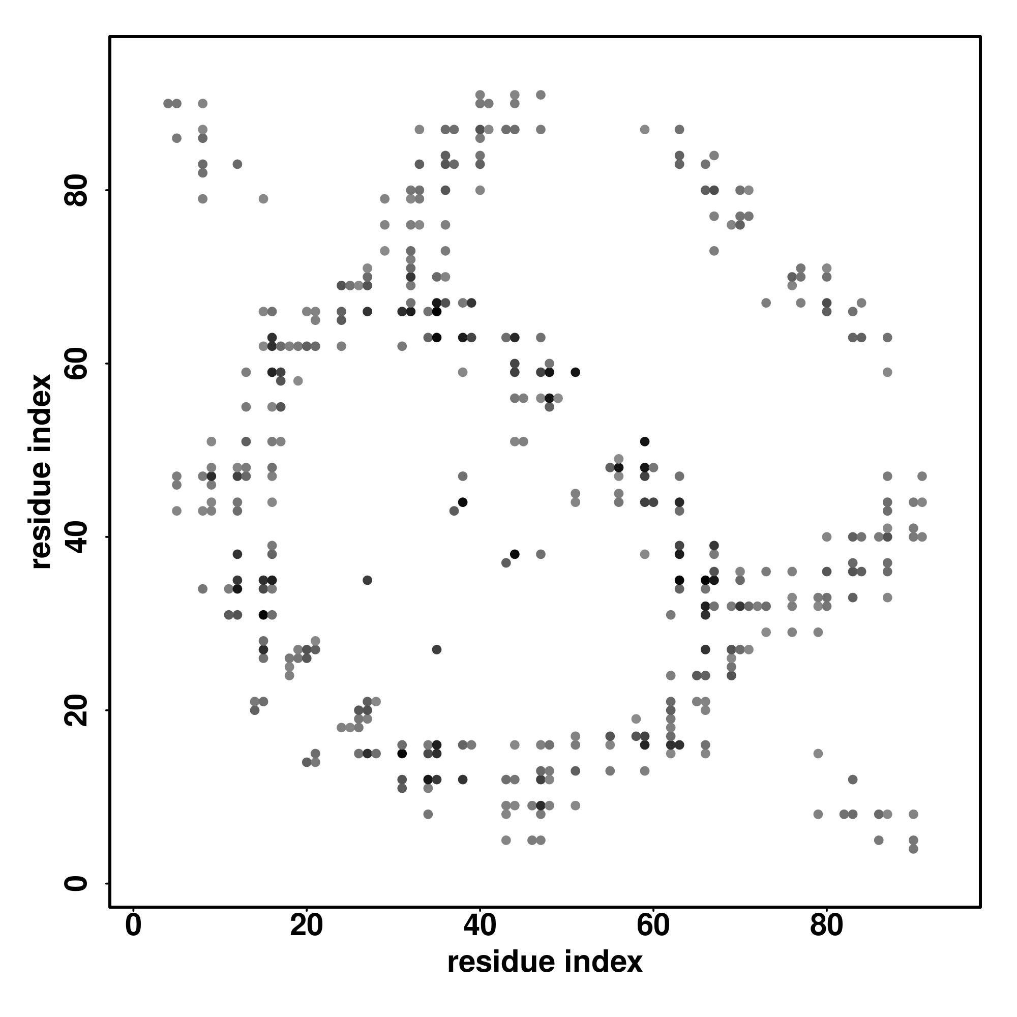 For the contact map, each dot represents a residue pair with predicted contact,