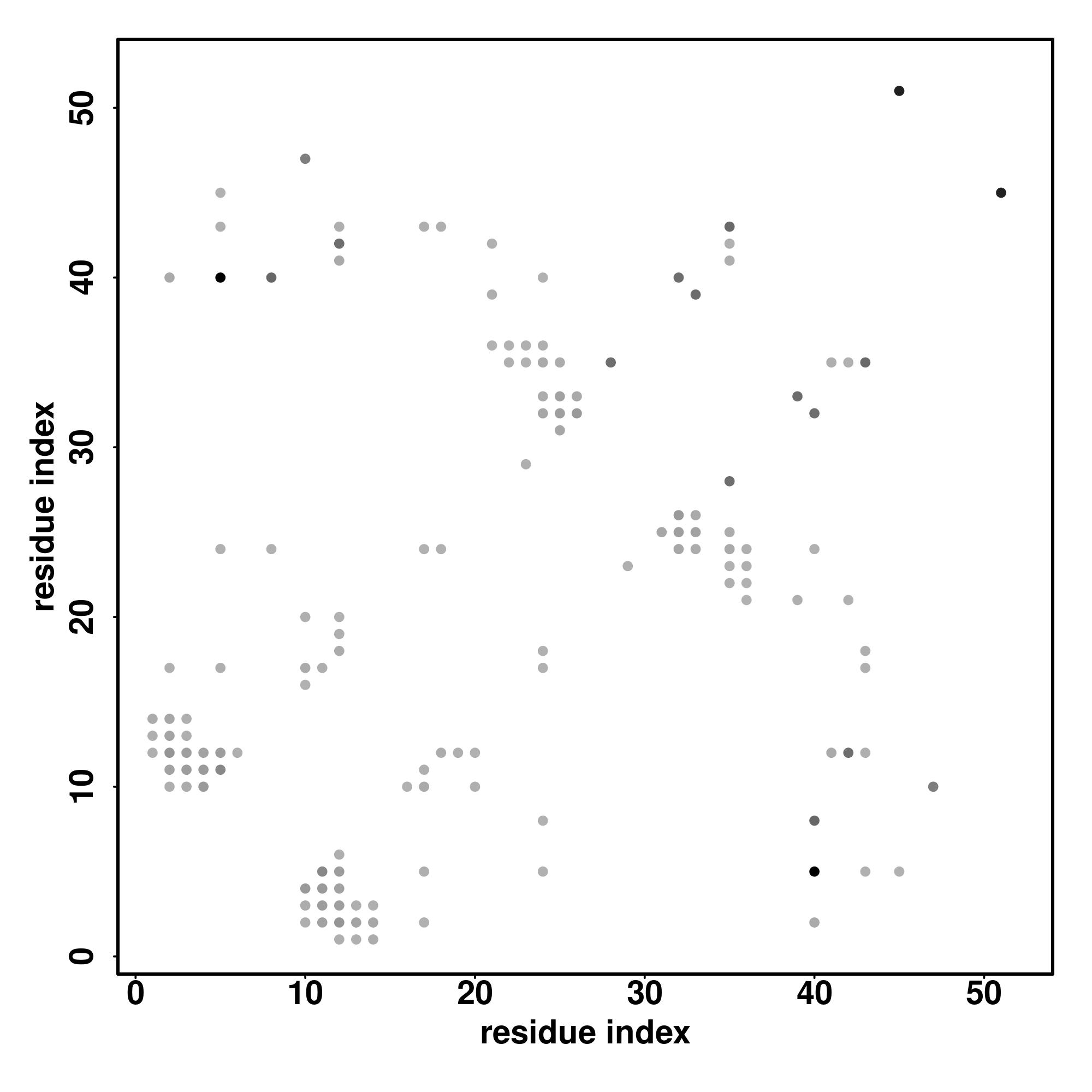 For the contact map, each dot represents a residue pair with predicted contact,