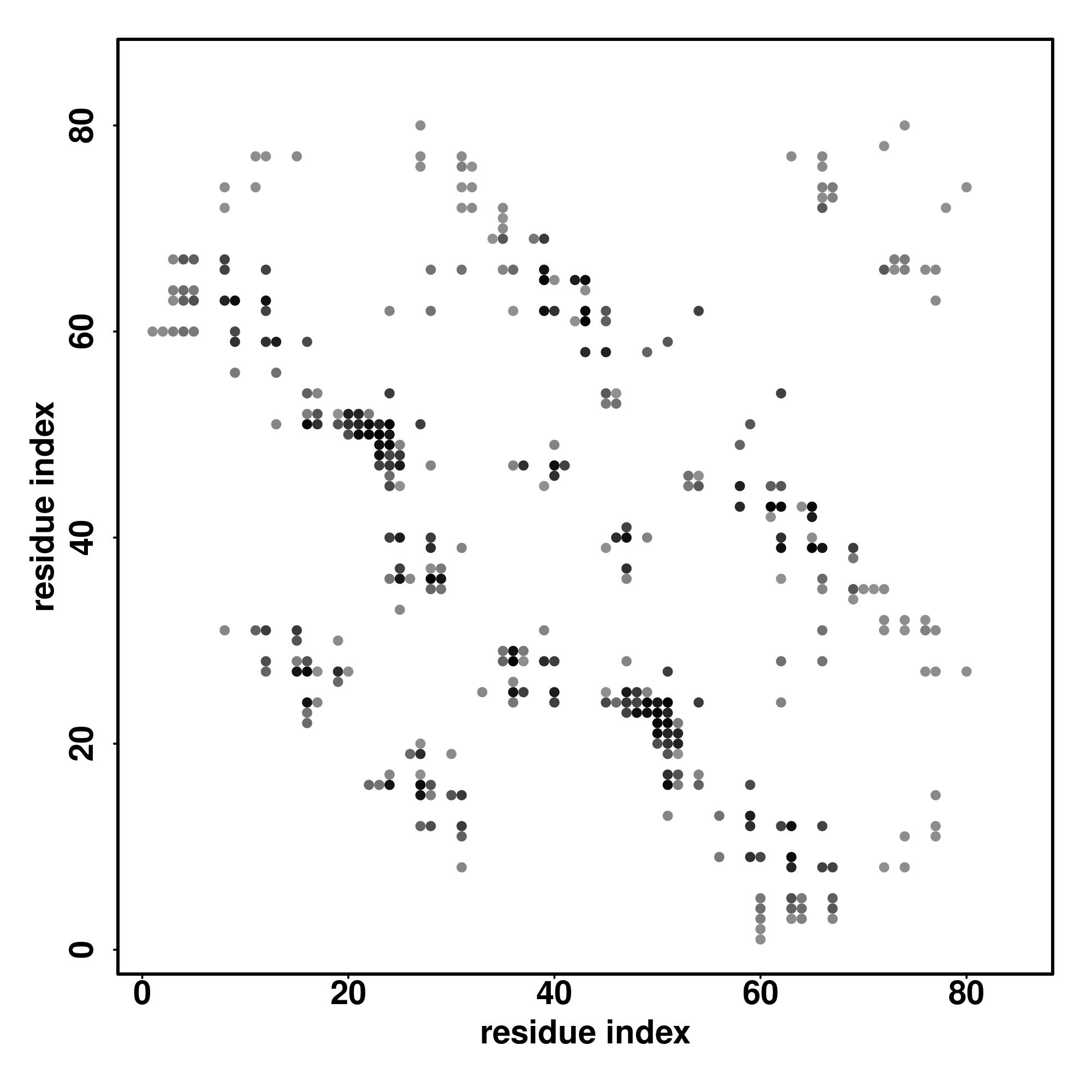 For the contact map, each dot represents a residue pair with predicted contact,