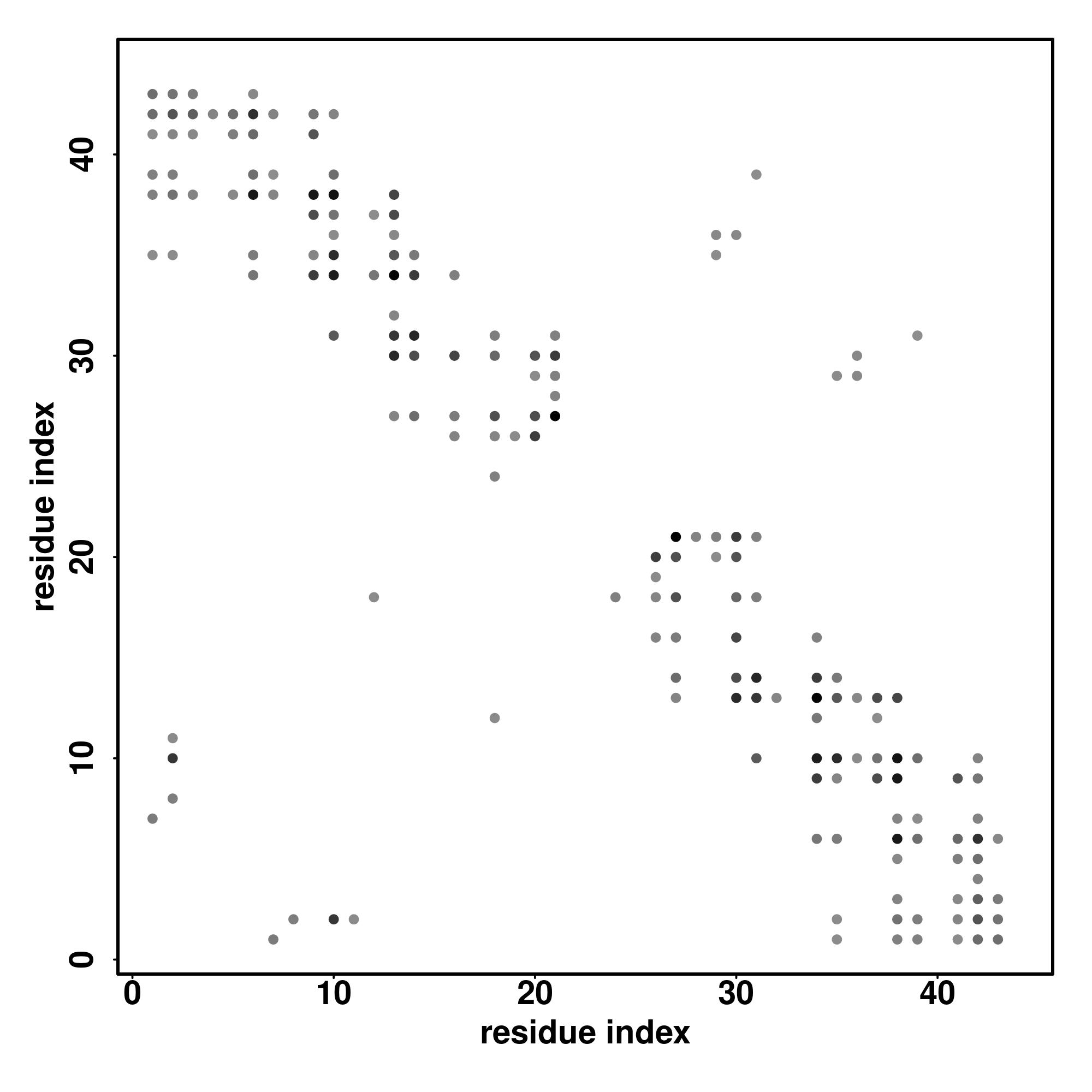 For the contact map, each dot represents a residue pair with predicted contact,