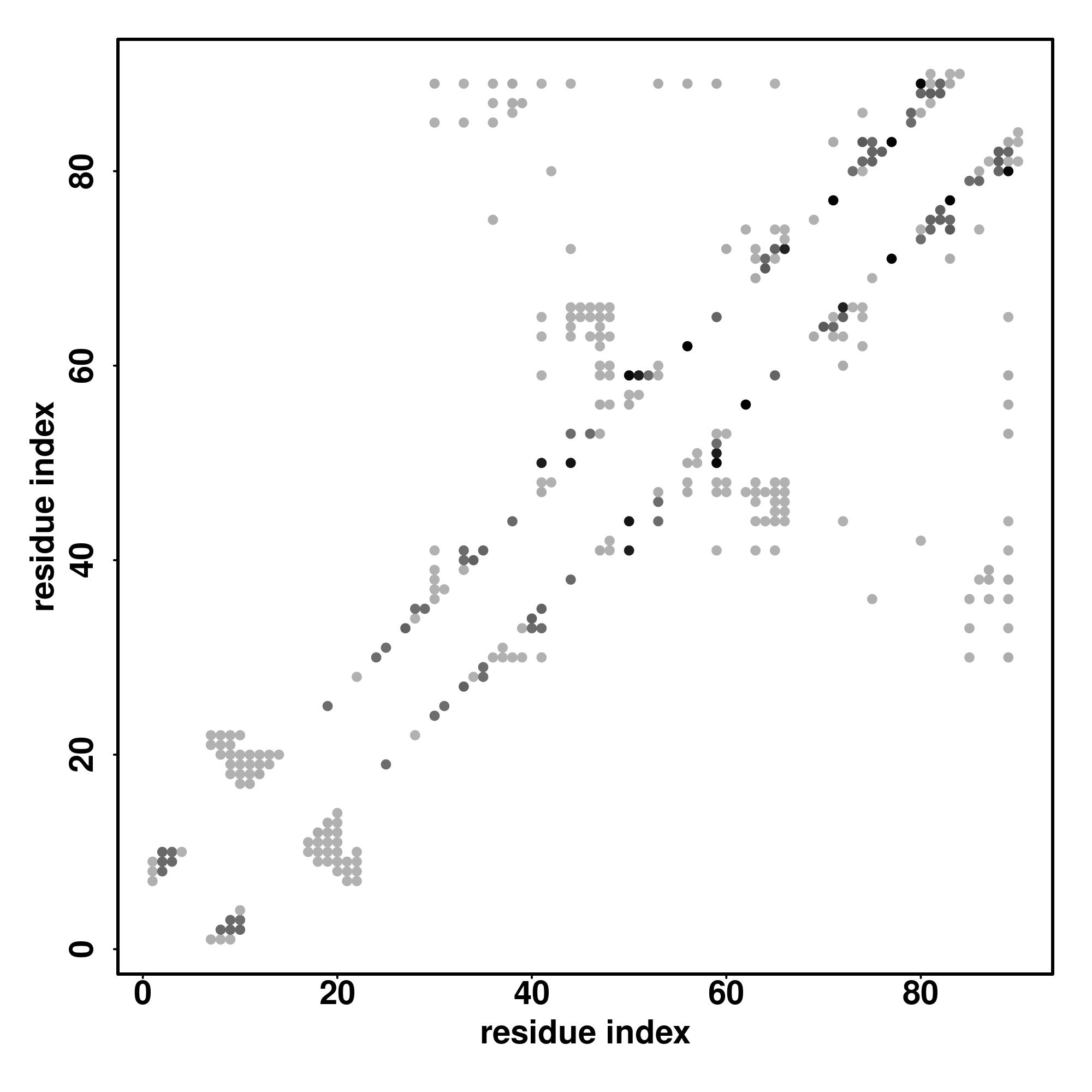 For the contact map, each dot represents a residue pair with predicted contact,