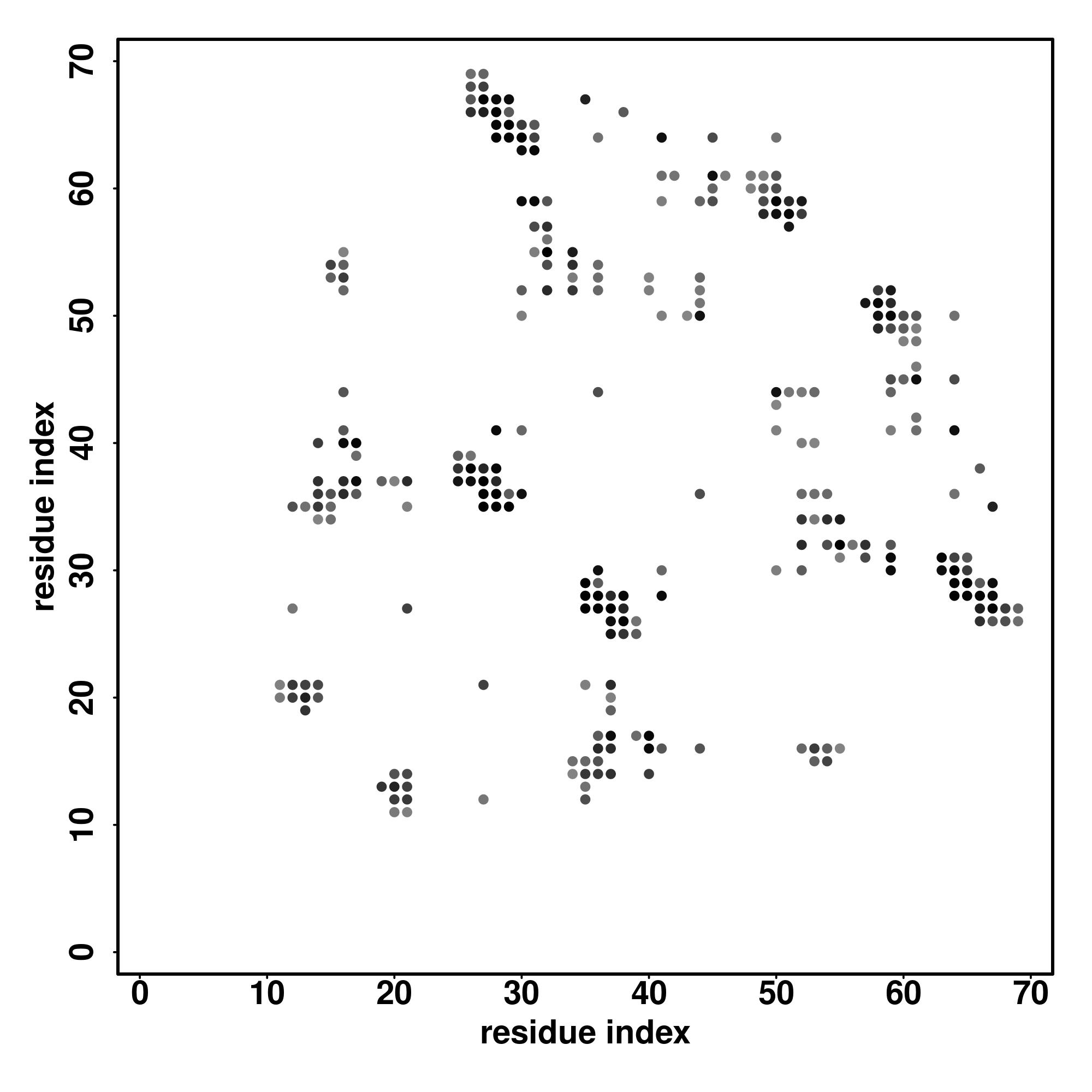 For the contact map, each dot represents a residue pair with predicted contact,