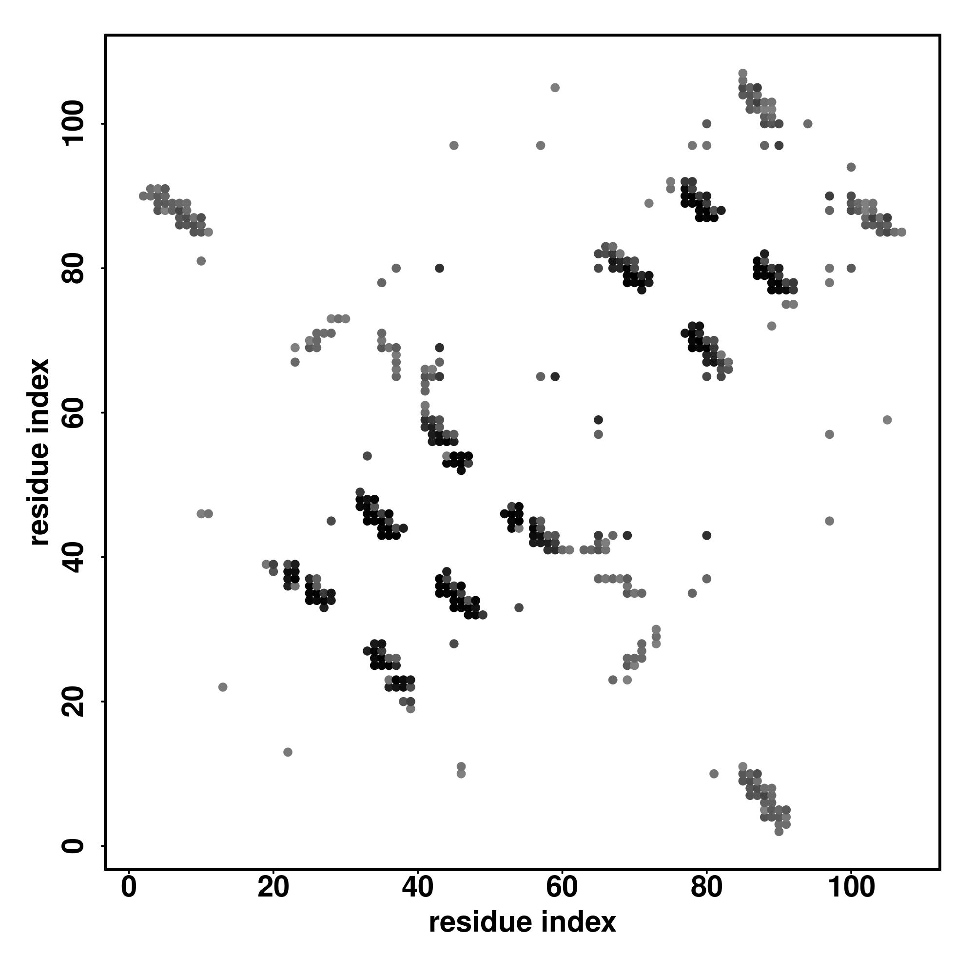 For the contact map, each dot represents a residue pair with predicted contact,