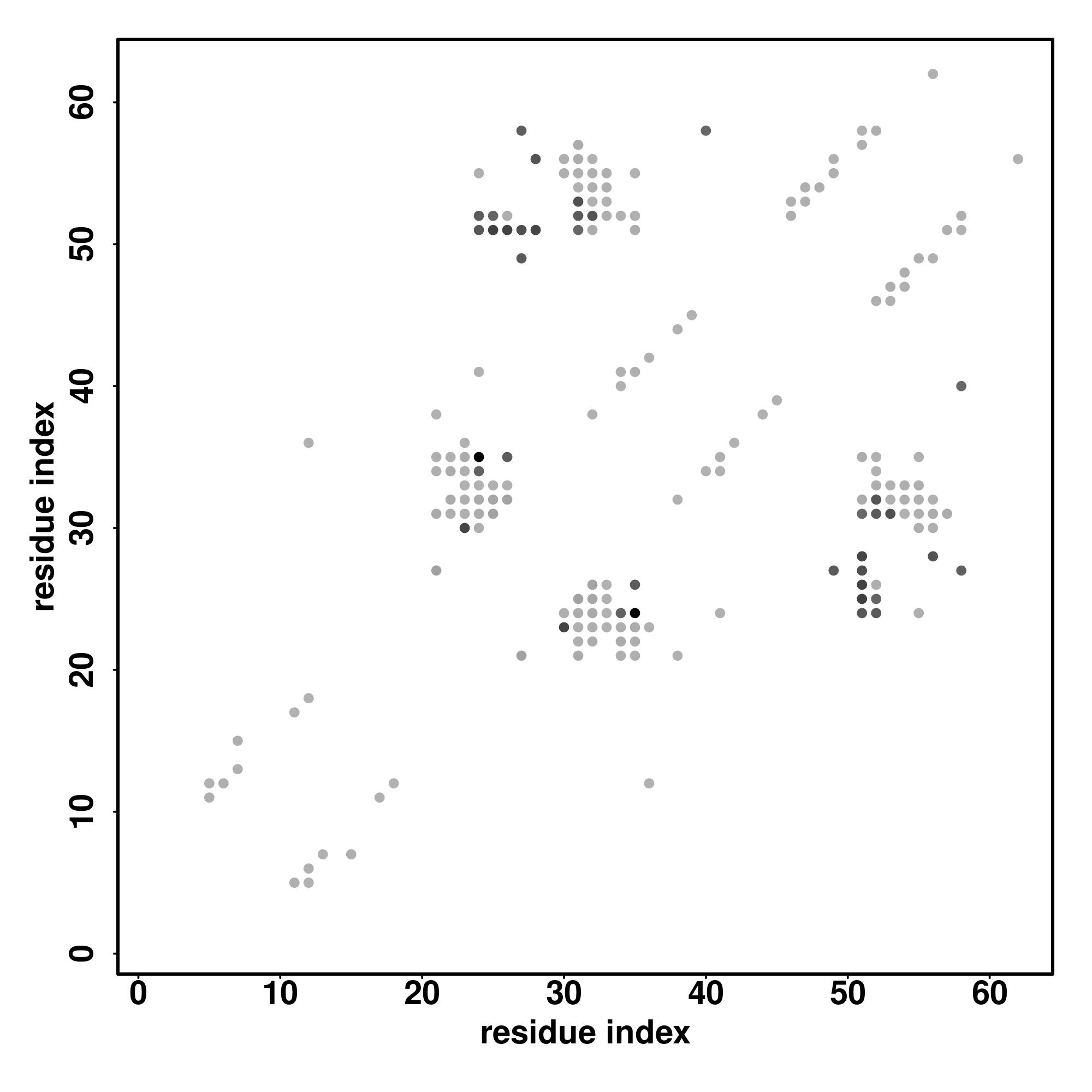 For the contact map, each dot represents a residue pair with predicted contact,
