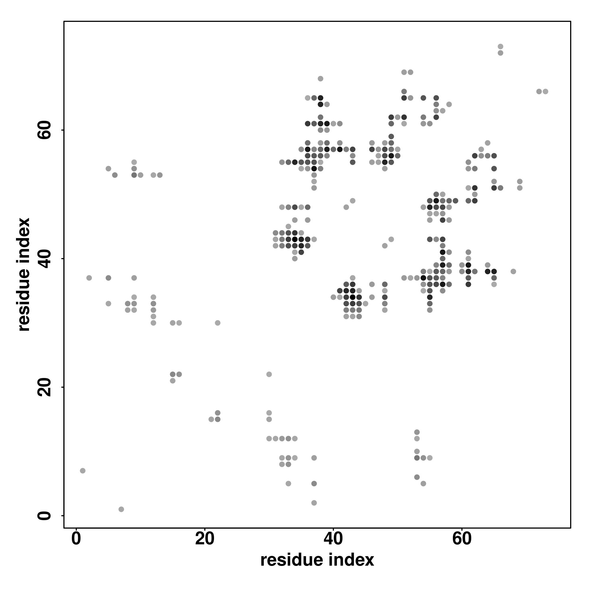 For the contact map, each dot represents a residue pair with predicted contact,