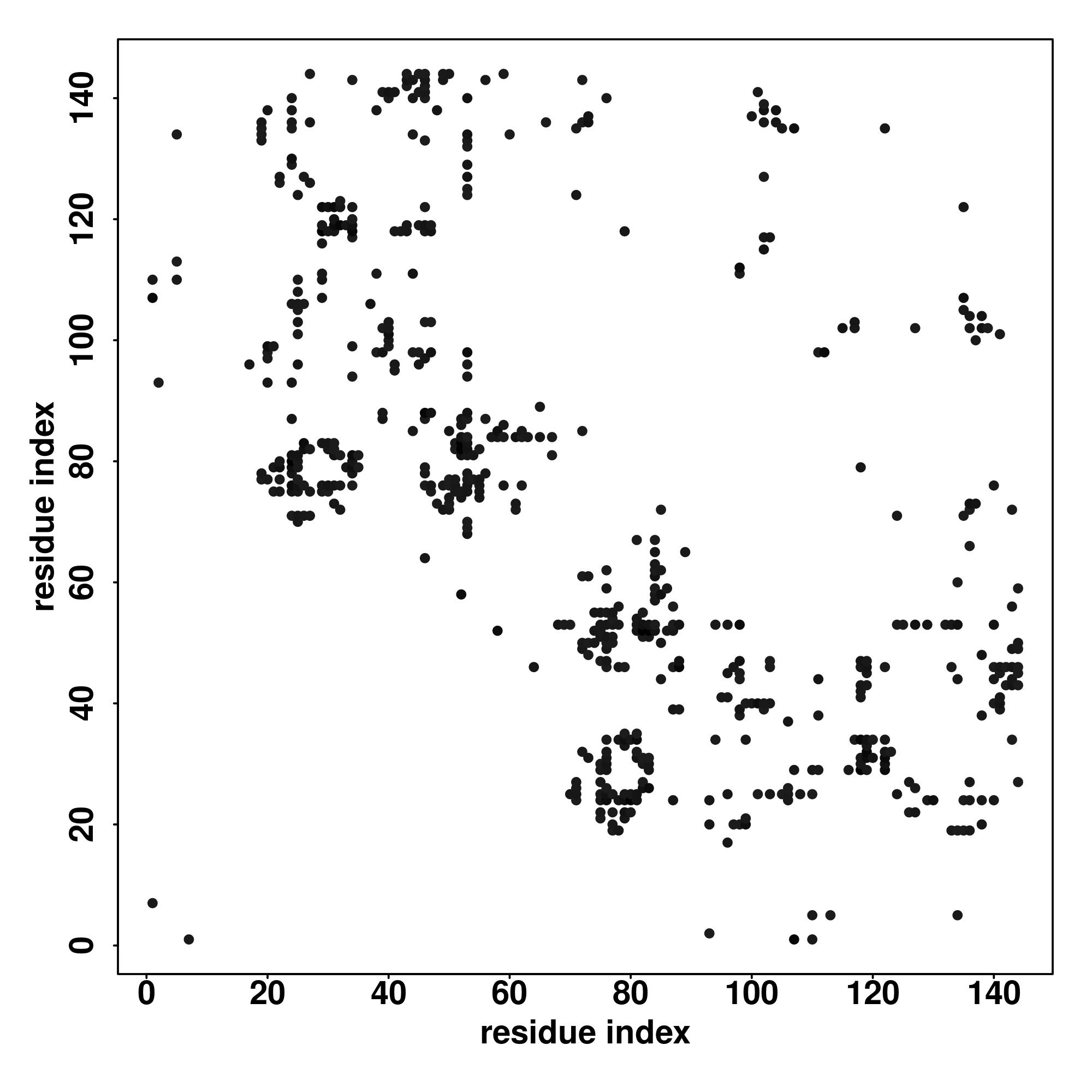 For the contact map, each dot represents a residue pair with predicted contact,