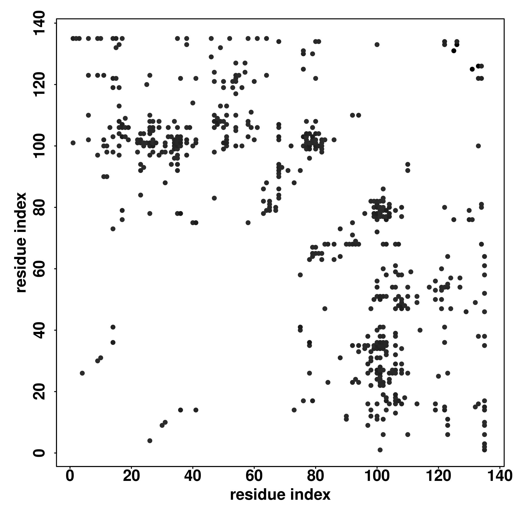 For the contact map, each dot represents a residue pair with predicted contact,