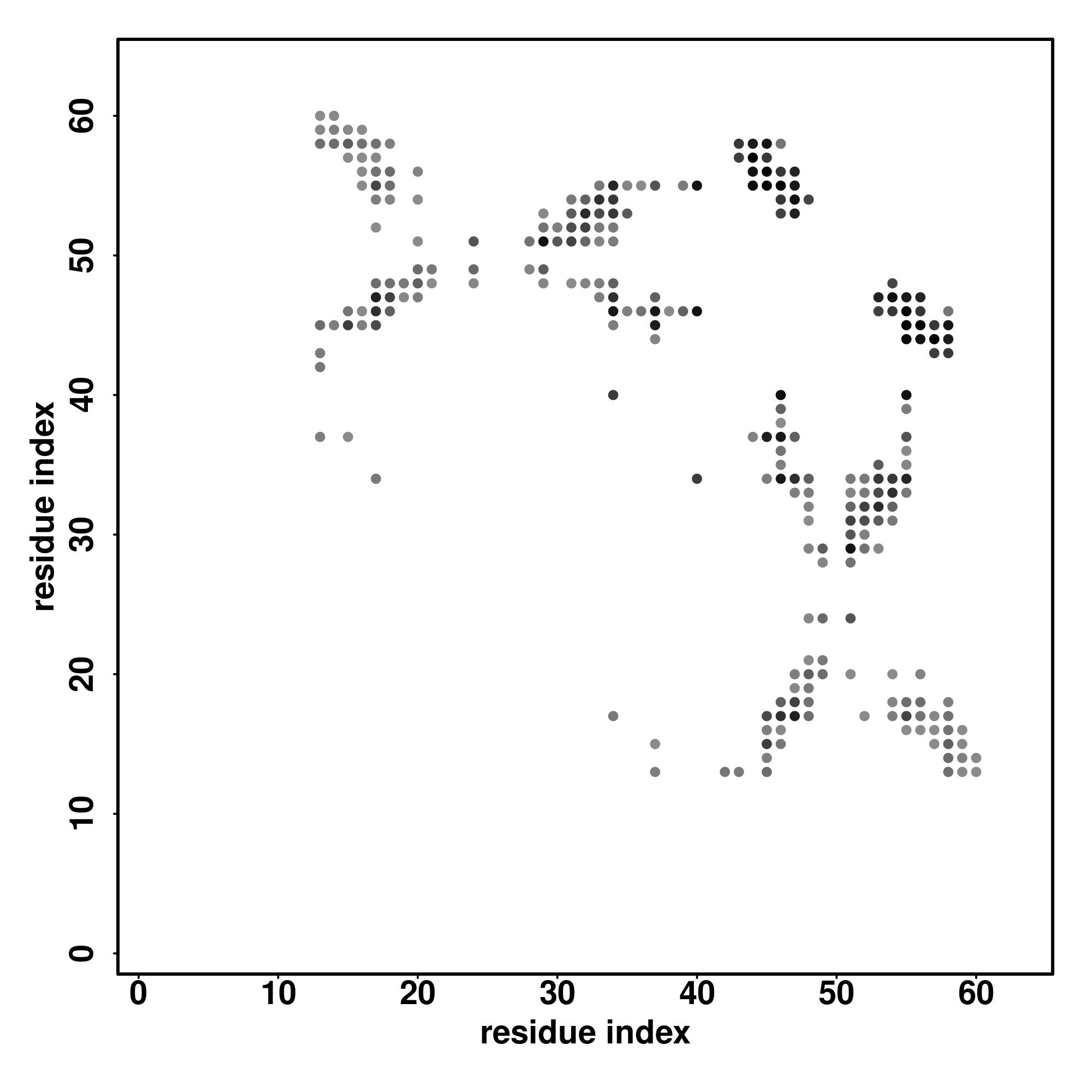 For the contact map, each dot represents a residue pair with predicted contact,