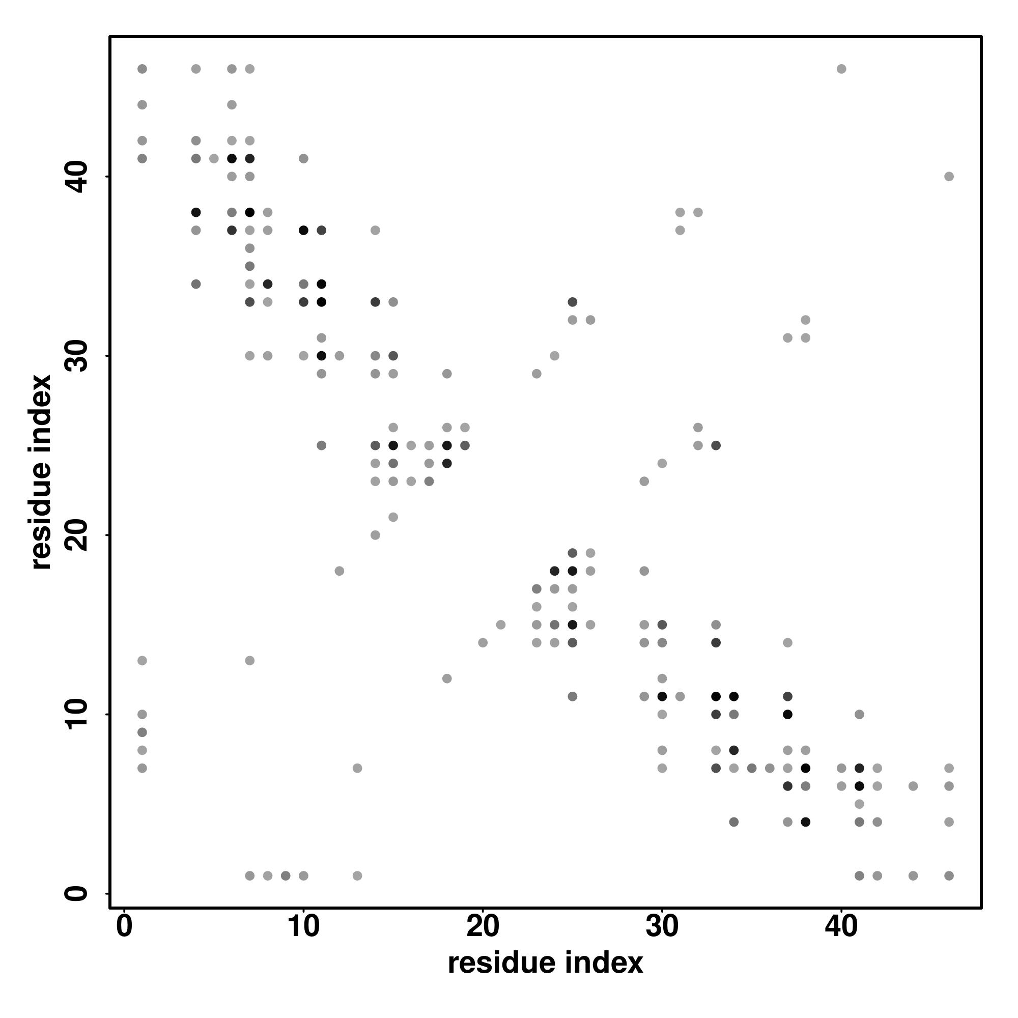 For the contact map, each dot represents a residue pair with predicted contact,