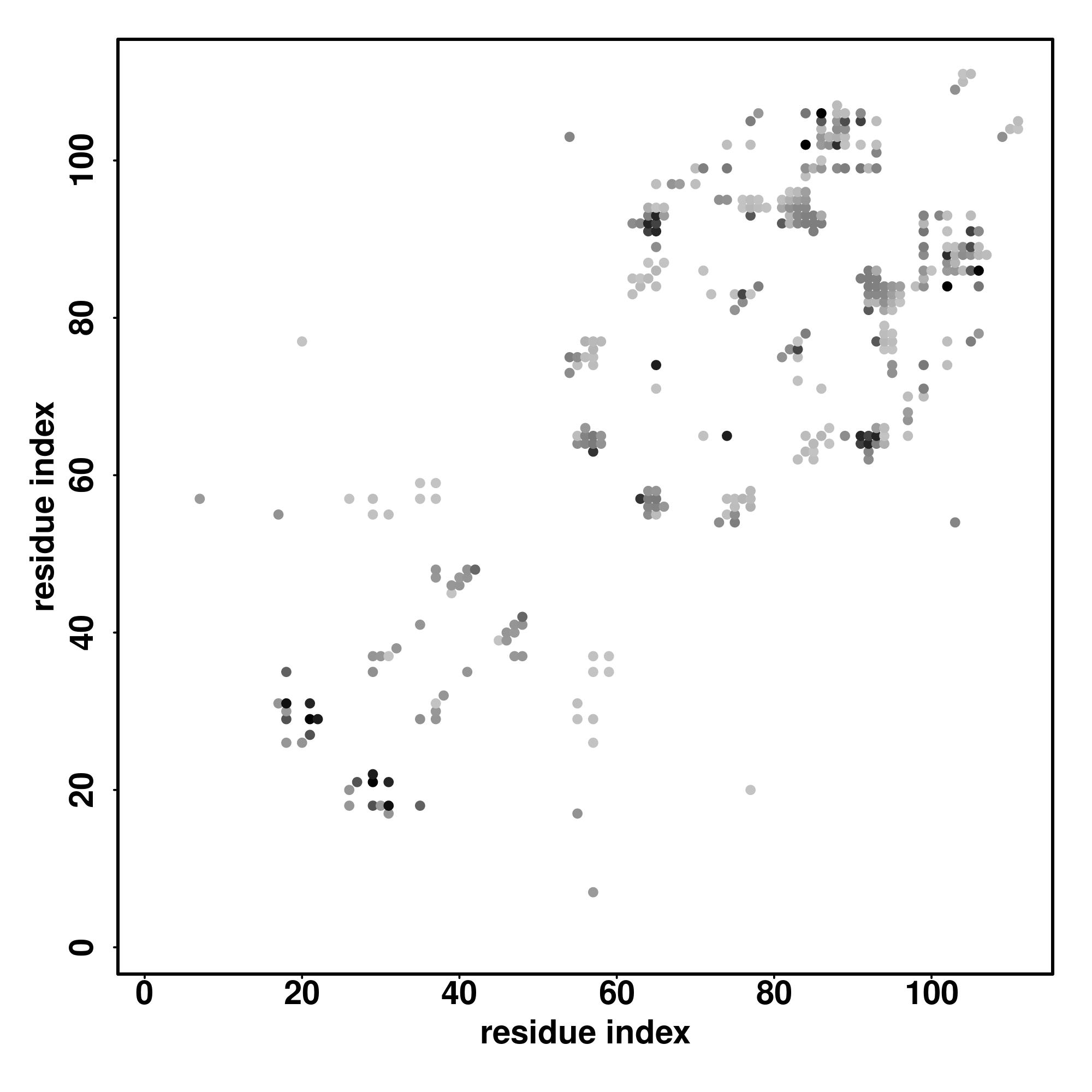 For the contact map, each dot represents a residue pair with predicted contact,
