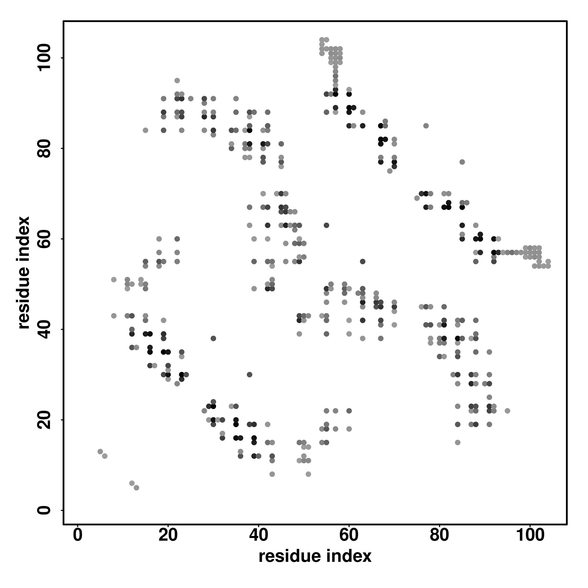 For the contact map, each dot represents a residue pair with predicted contact,