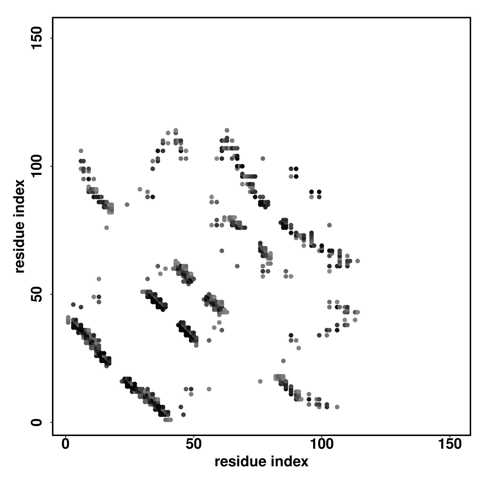 For the contact map, each dot represents a residue pair with predicted contact,