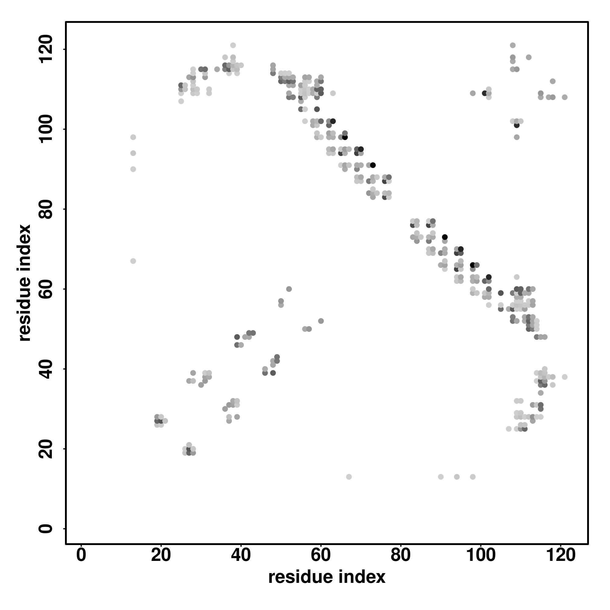 For the contact map, each dot represents a residue pair with predicted contact,