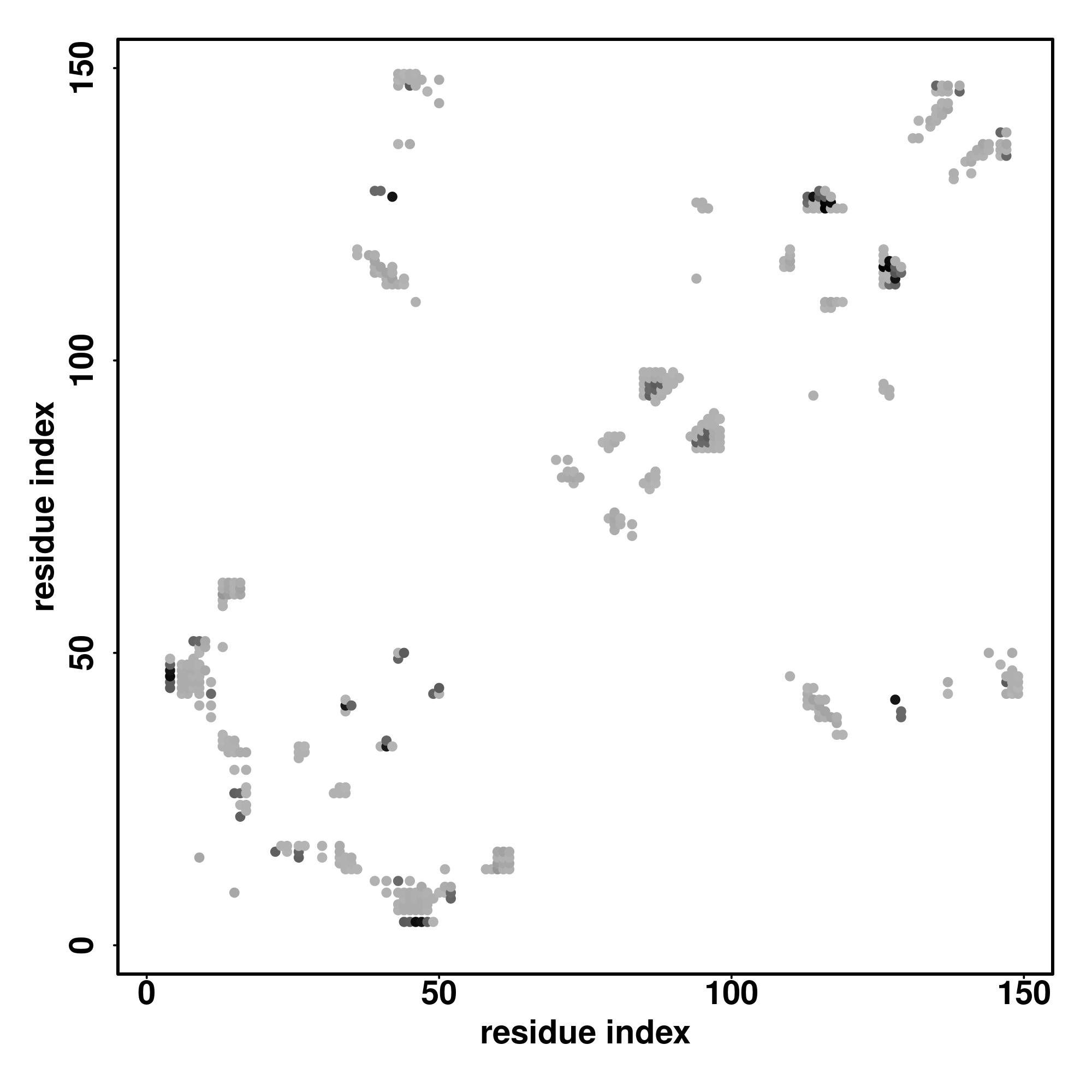 For the contact map, each dot represents a residue pair with predicted contact,