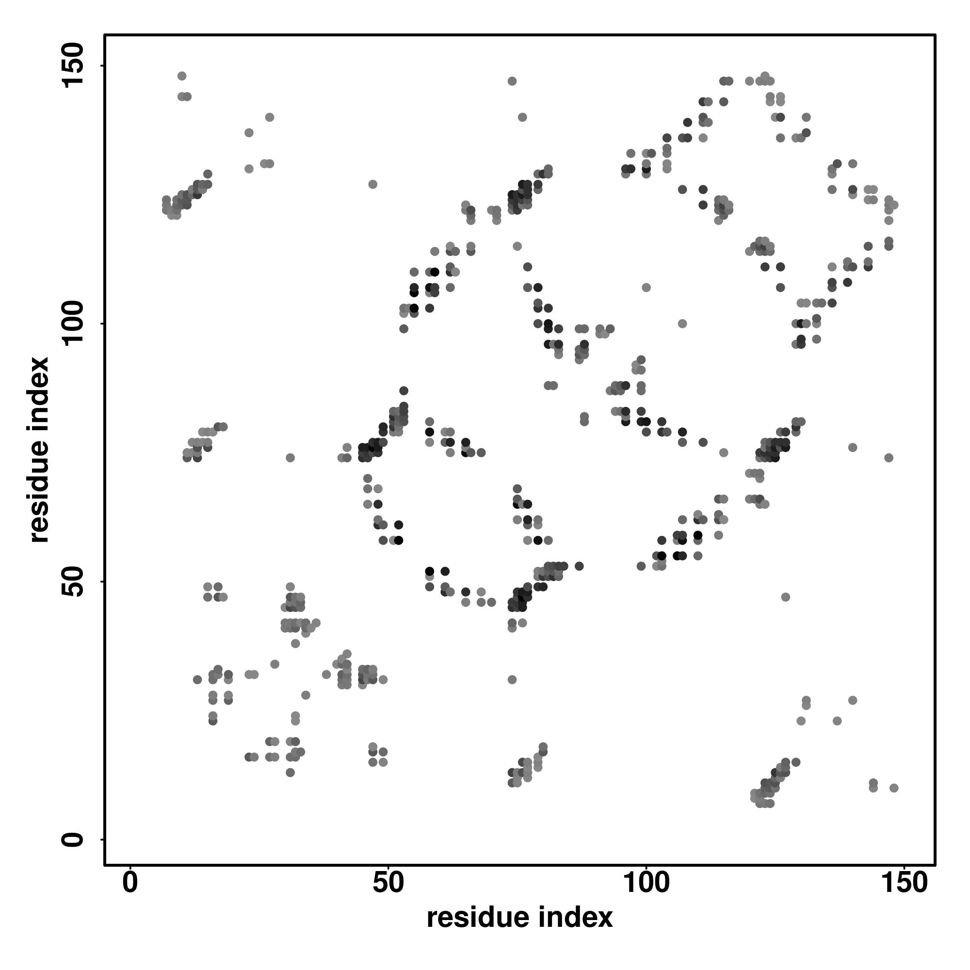For the contact map, each dot represents a residue pair with predicted contact,