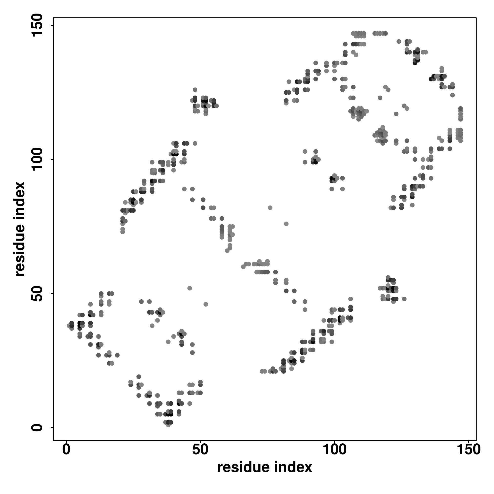 For the contact map, each dot represents a residue pair with predicted contact,