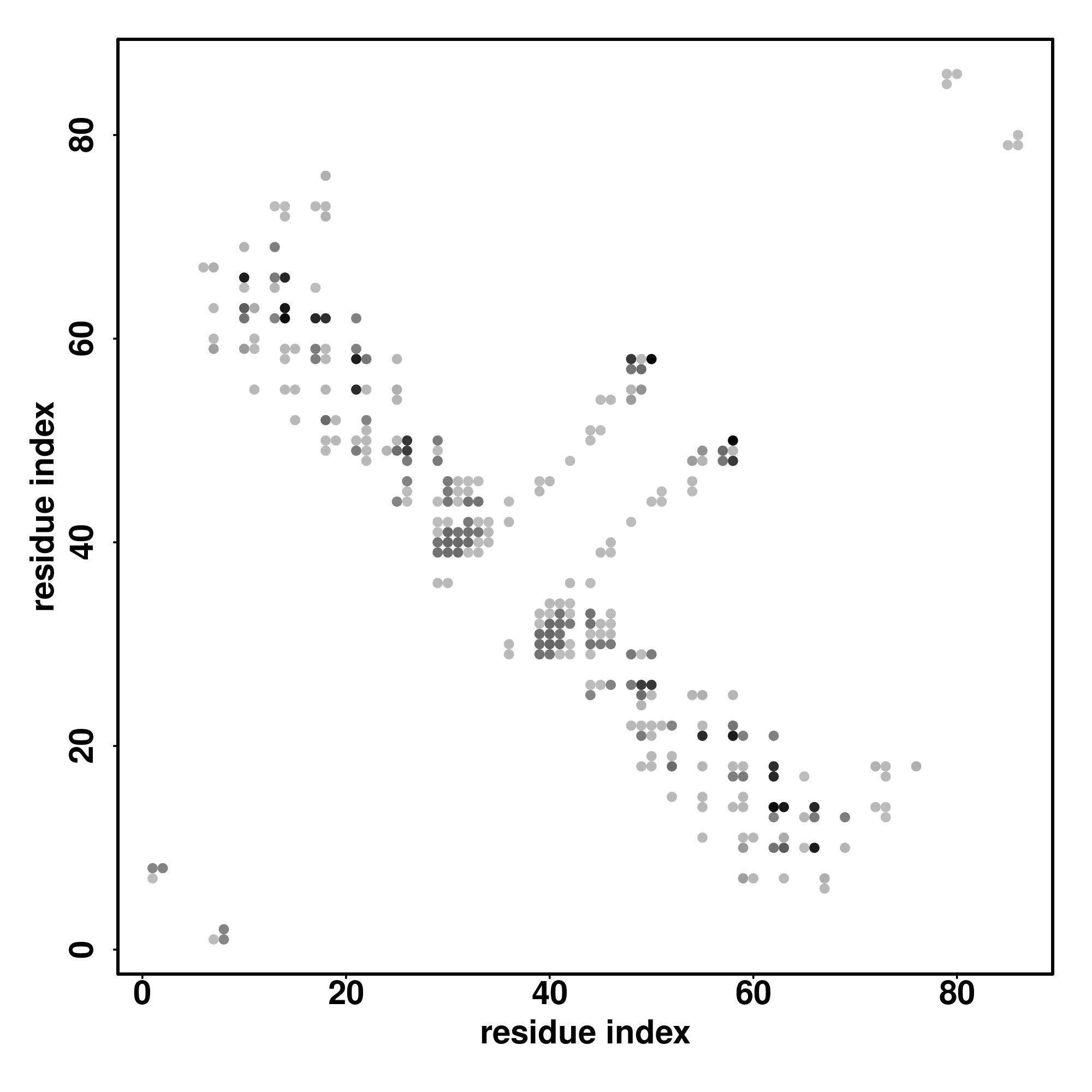 For the contact map, each dot represents a residue pair with predicted contact,
