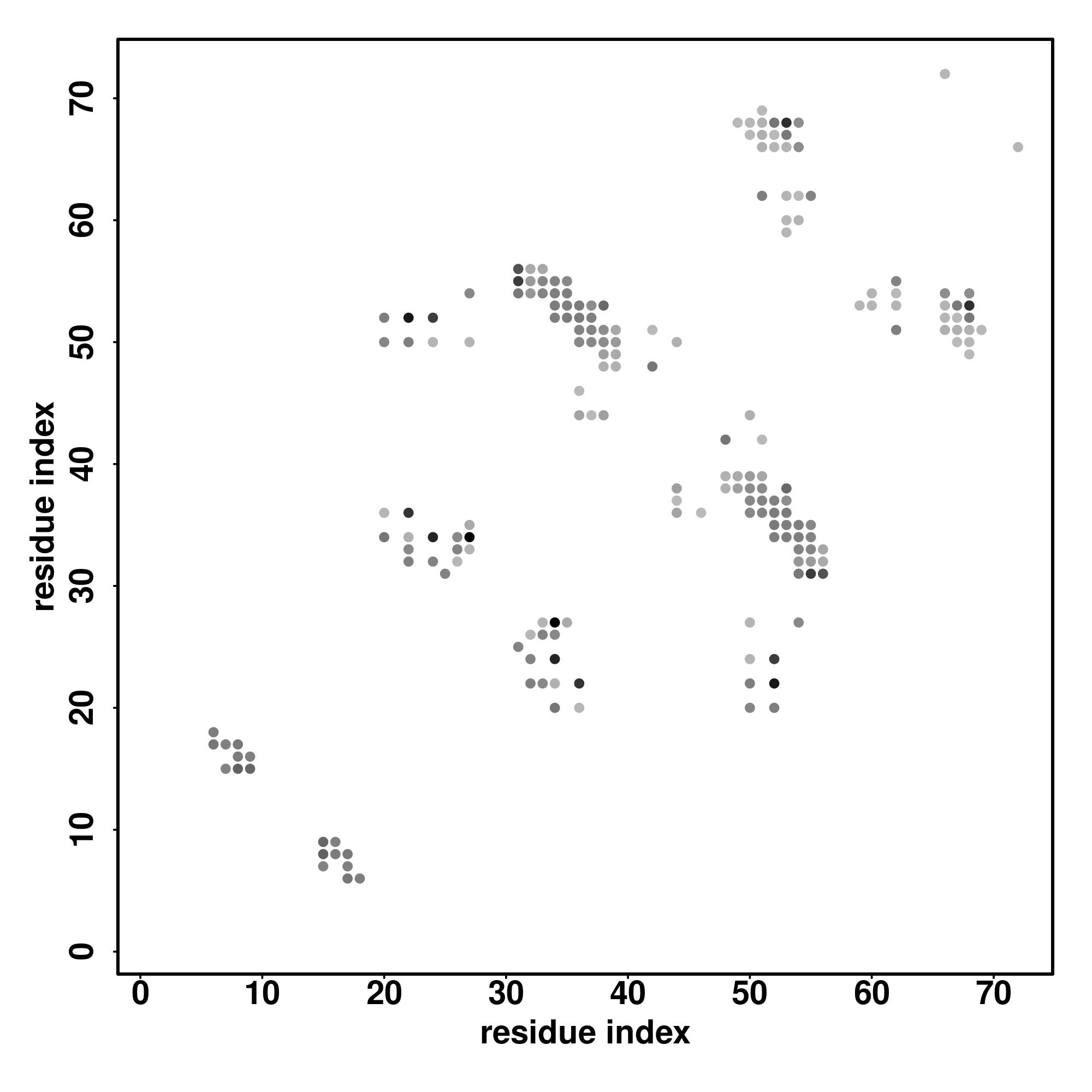 For the contact map, each dot represents a residue pair with predicted contact,